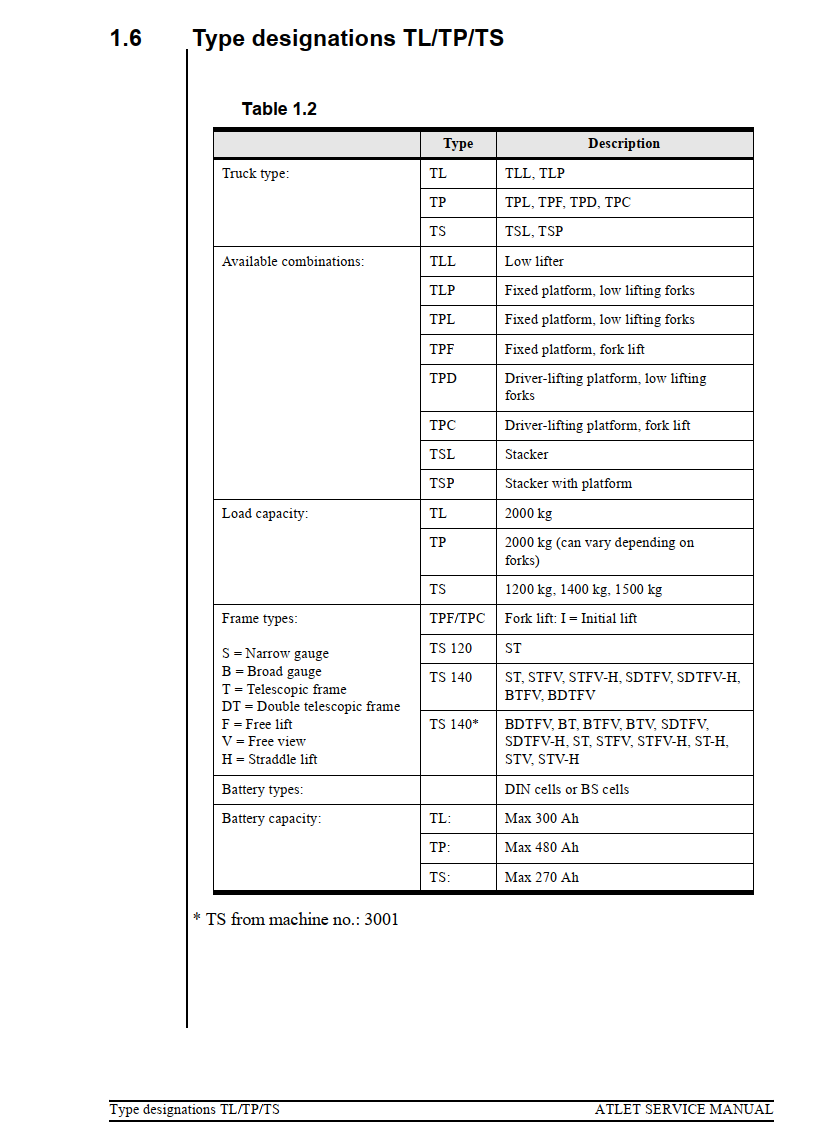 ATLET T SERIES REACH TRUCK SERVICE REPAIR MANUAL