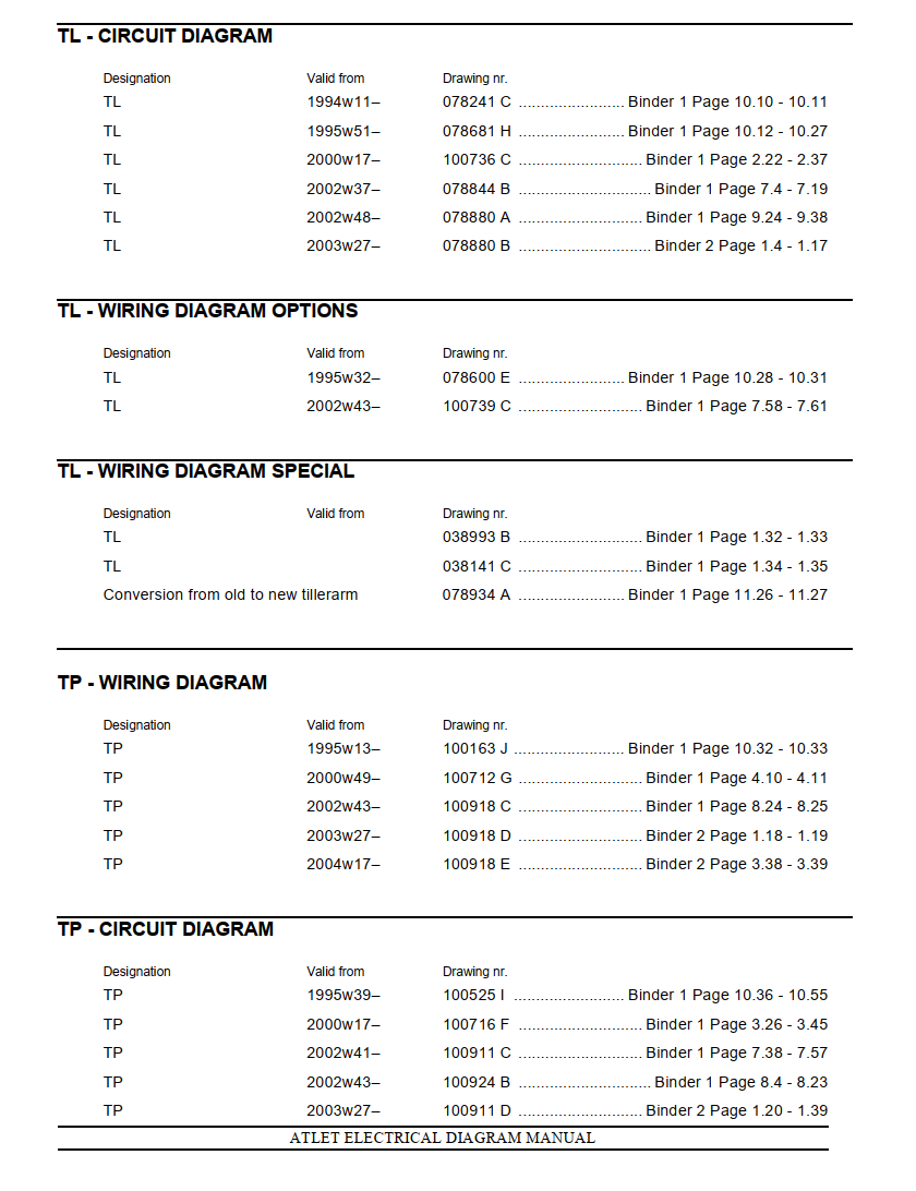 ATLET TOPAX SERIES FORKLIFT FULL WIRING DIAGRAMS AND CIRCUIT DIAGRAMS MANUAL