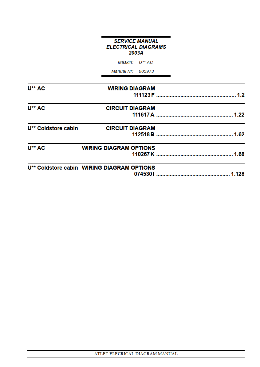 ATLET U AC SERIES FORKLIFT WIRING DIAGRAMS AND CIRCUIT DIAGRAMS MANUAL