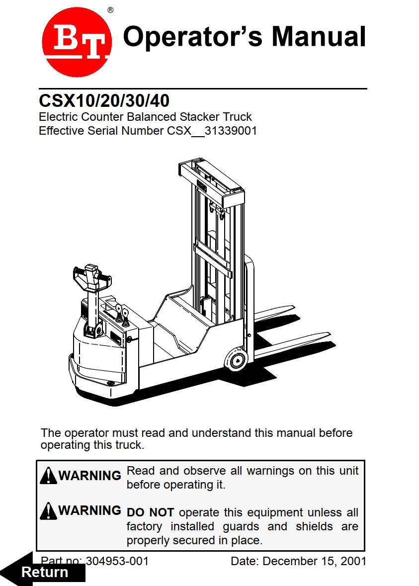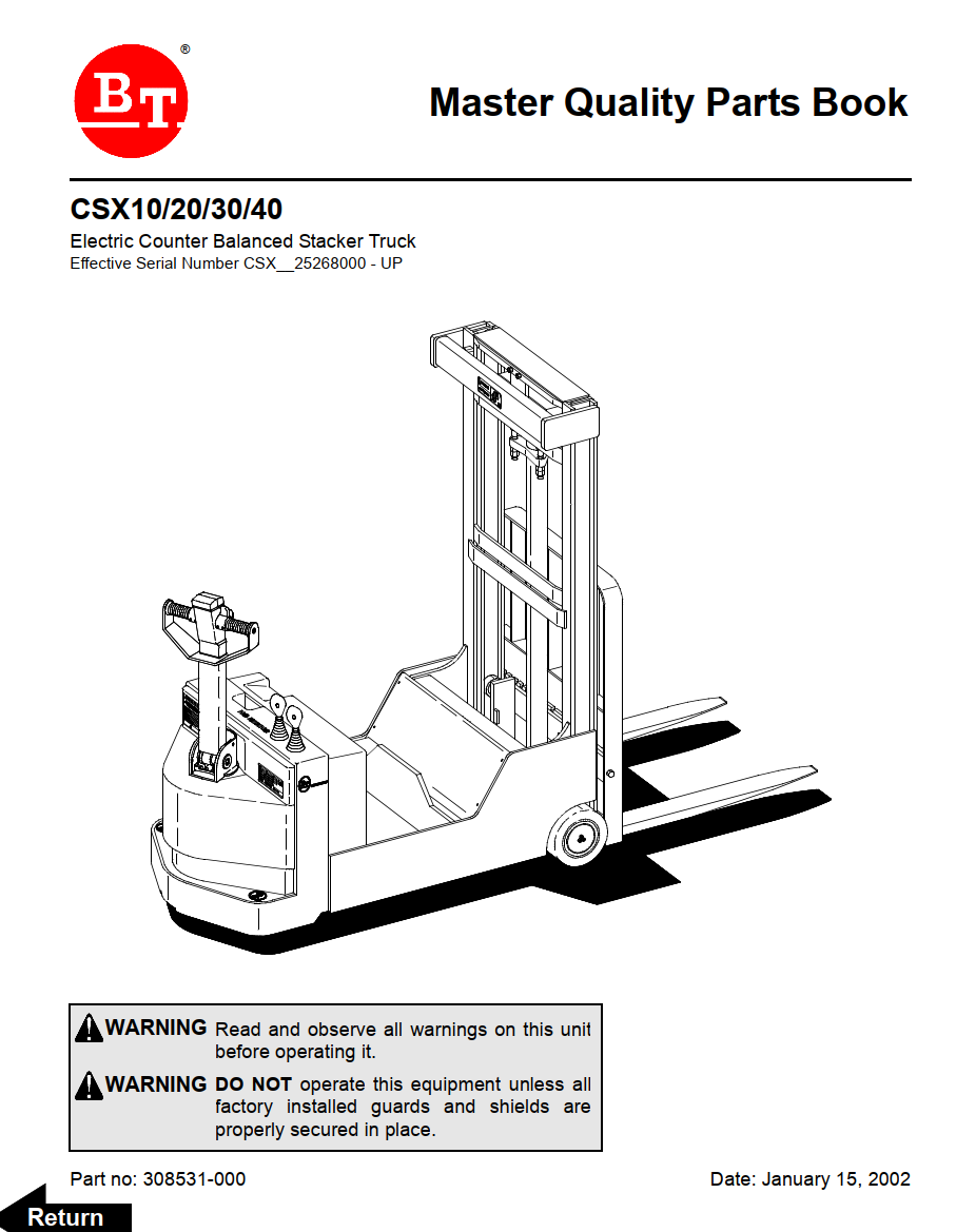 BT CSX10 CSX20 CSX30 CSX40 LIFT TRUCK SERVICE, PARTS, OPERATOR, WIRING MANUAL