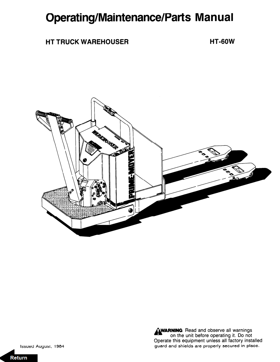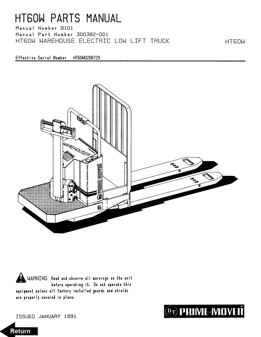 BT HT60W HT-60W LOW LIFT PALLET TRUCK SERVICE REPAIR, PARTS, OPERATOR'S MANUAL