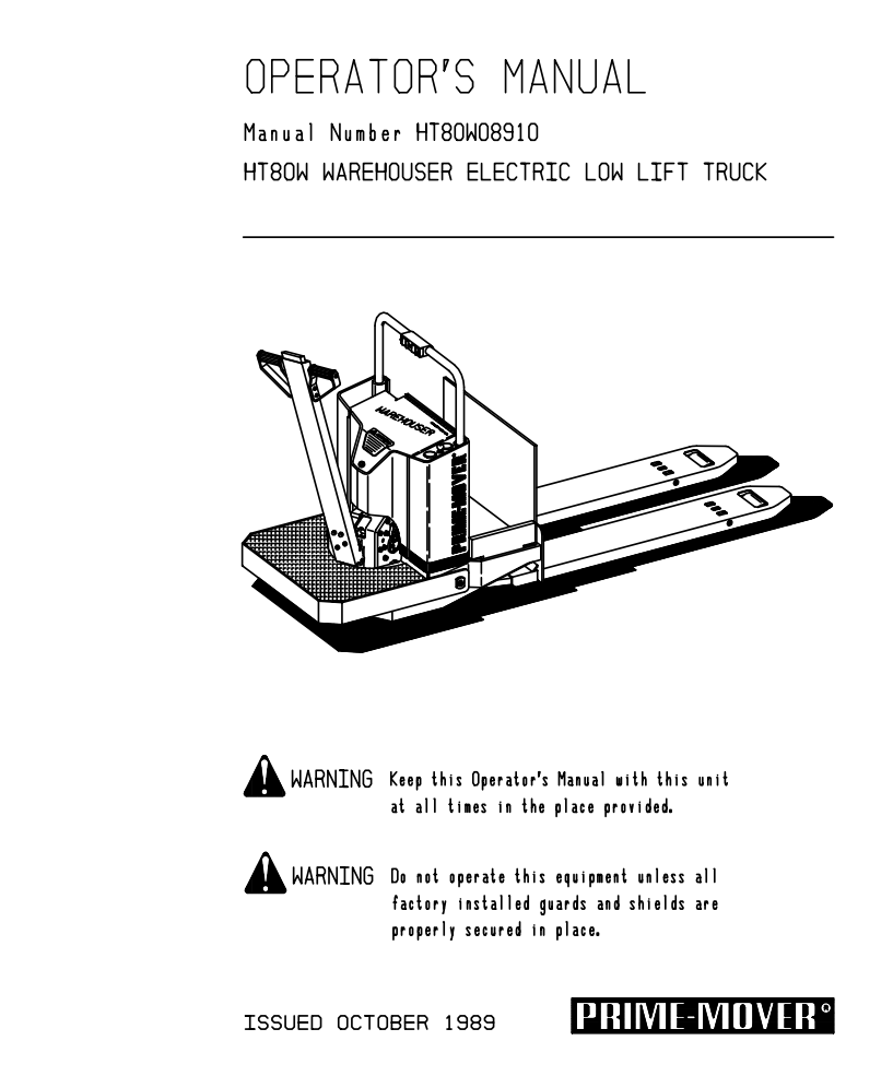 BT HT80W LOW LIFT PALLET TRUCK SERVICE REPAIR, PARTS, OPERATOR'S MANUAL