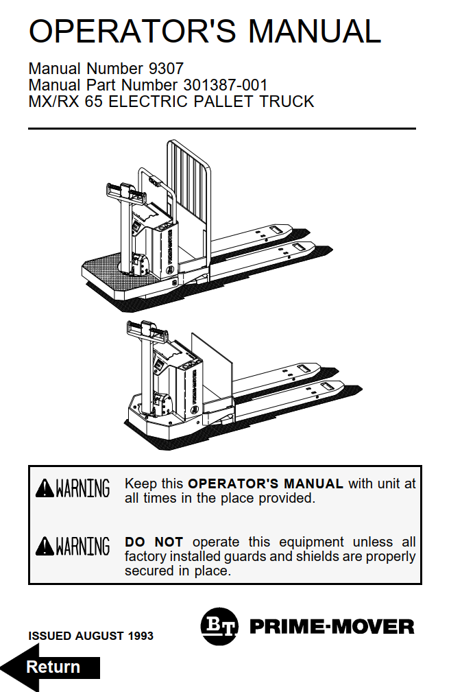 BT MX65 RX65 LOW LIFT PALLET TRUCK SERVICE REPAIR, PARTS, OPERATOR'S MANUAL