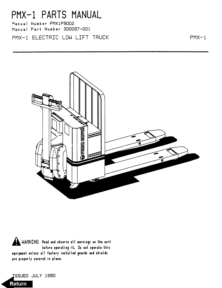 BT PMX PMX-1 ELECTRIC LOW LIFT TRUCK SERVICE REPAIR, OPERATOR, PARTS MANUAL