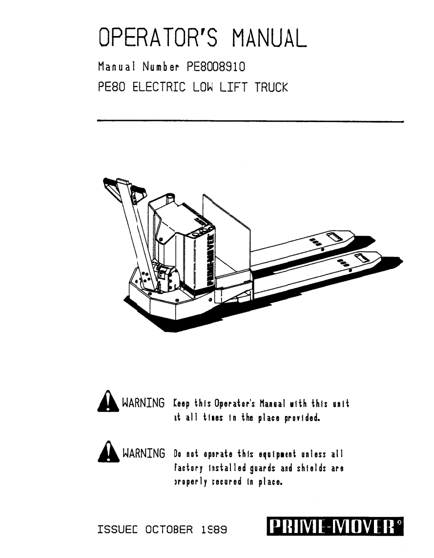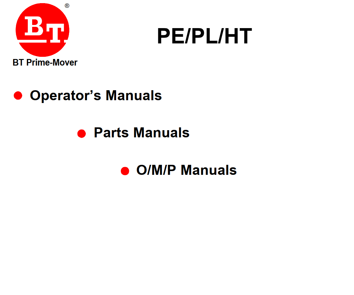 BT PRIME MOVER PE PL HT ELECTRIC STACKER MAINTENANCE, OPERATOR, PARTS MANUAL