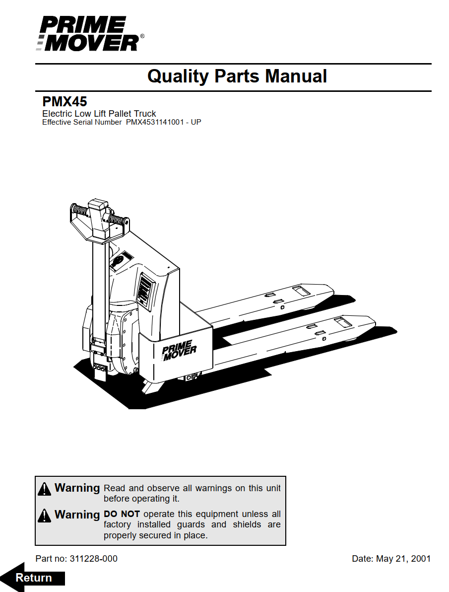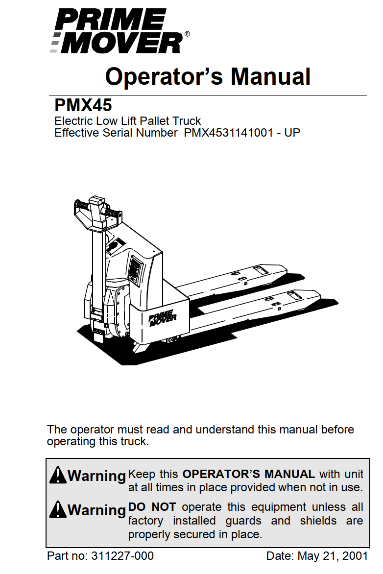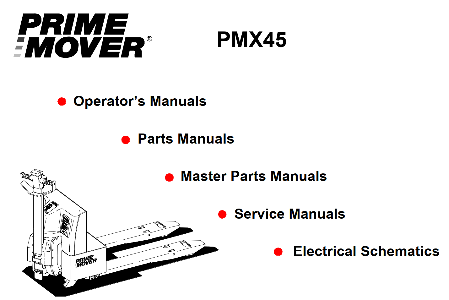 BT PRIME MOVER PMX45 ELECTRIC LOW LIFT PALLET TRUCK SERVICE, OPERATOR, PARTS, WIRING MANUAL