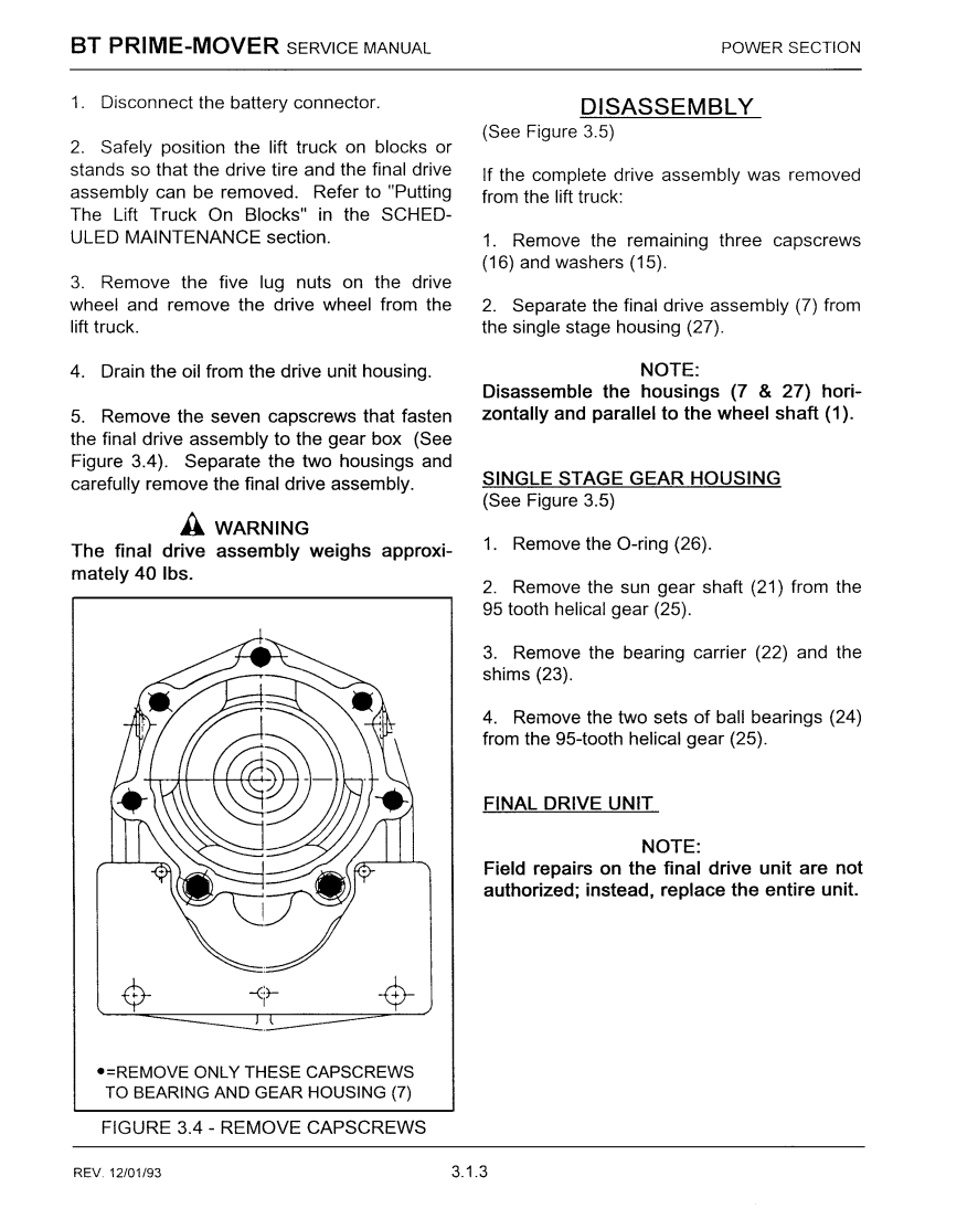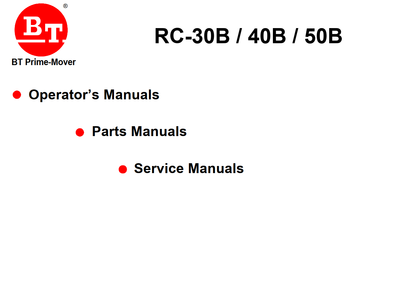 BT PRIME MOVER RC-30B RC-40B RC-50B ELECTRIC RIDER TRUCK SERVICE, PARTS, OPERATOR MANUAL