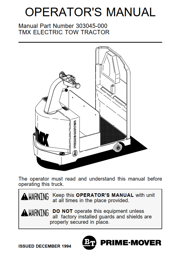 BT PRIME MOVER TMX ELECTRIC TOW TRACTOR SERVICE, OPERATOR, PARTS, WIRING MANUAL