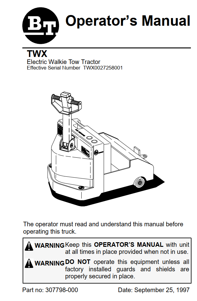 BT PRIME MOVER TWX ELECTRIC WALKIE TOW TRACTOR OPERATOR'S, PARTS MANUAL
