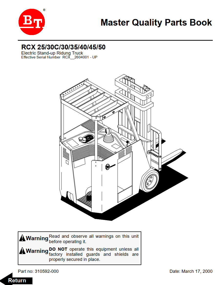 BT RCX25 RCX30C RCX30 RCX35 RCX40 RCX45 RCX50 ELECTRIC RIDER TRUCK SERVICE REPAIR MANUAL
