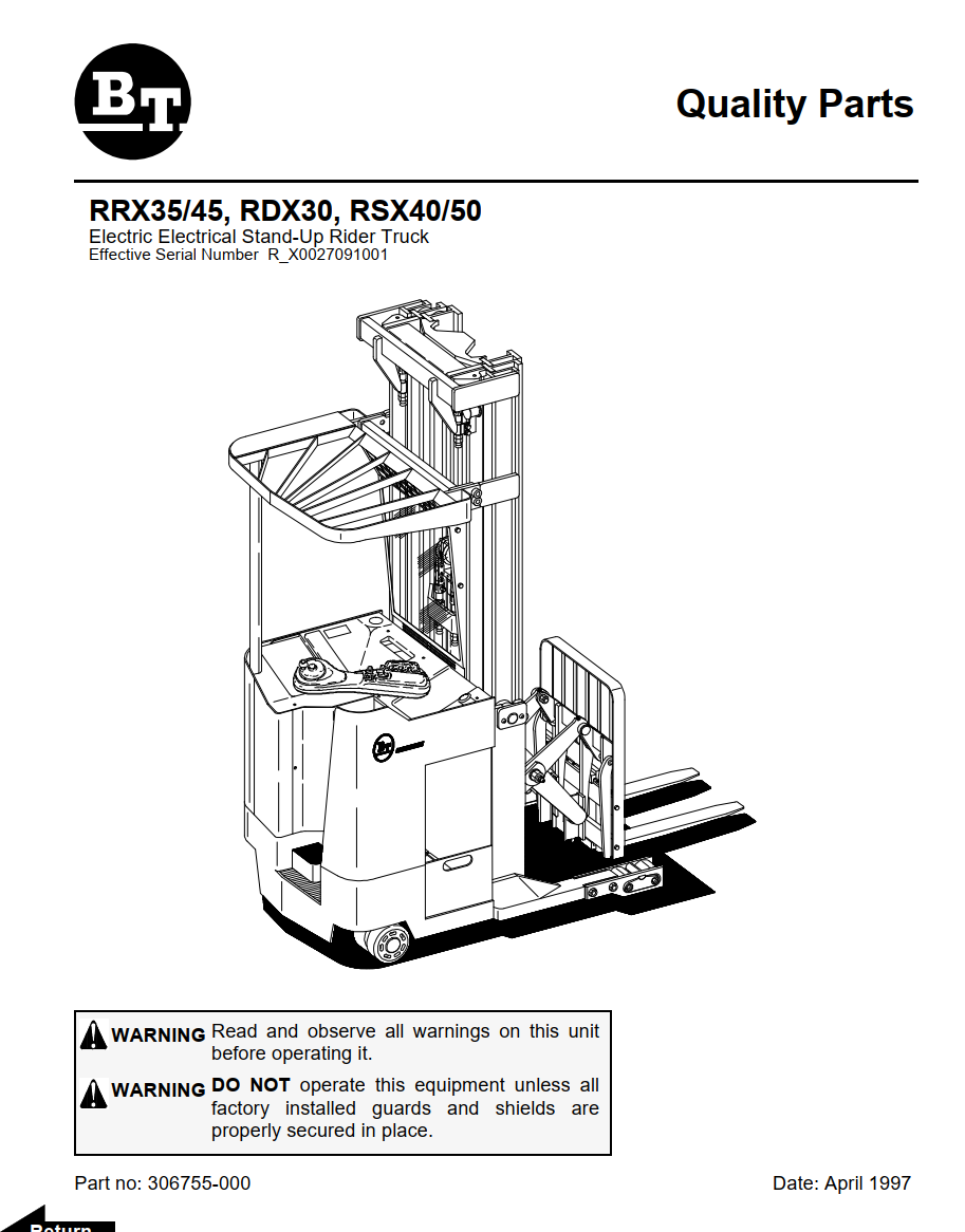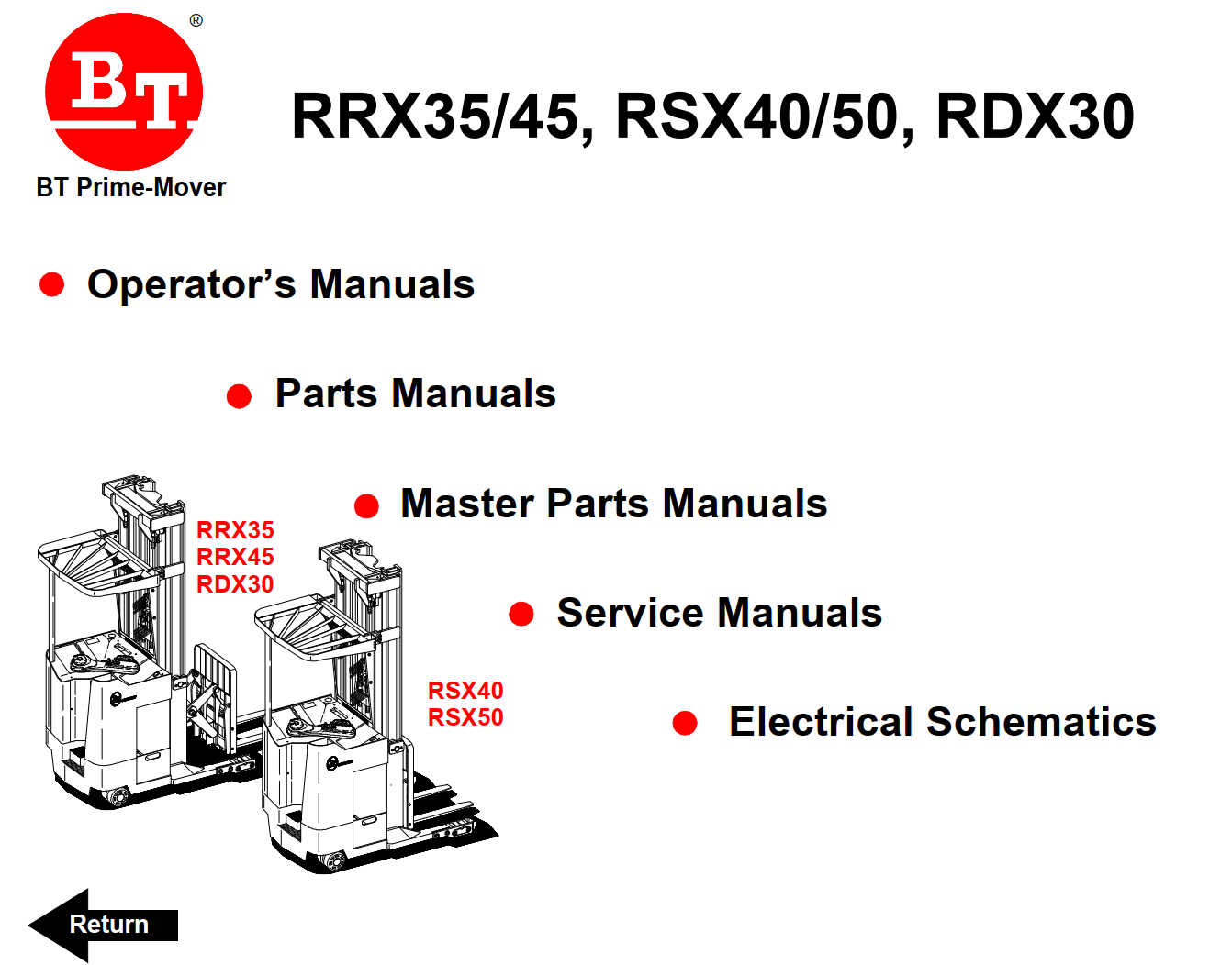 BT RRX35 RRX45 RDX30 RSX40 RSX50 ELECTRIC RIDER TRUCK FULL SET SERVICE REPAIR MANUAL