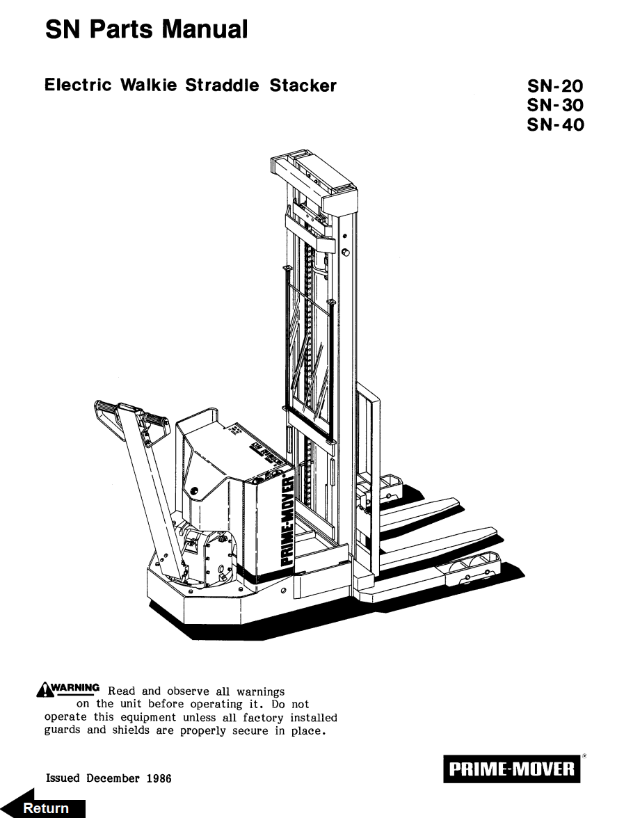 BT SN SR ELECTRIC WALKIE REACH TRUCK SERVICE, PARTS, OPTERATOR MANUAL