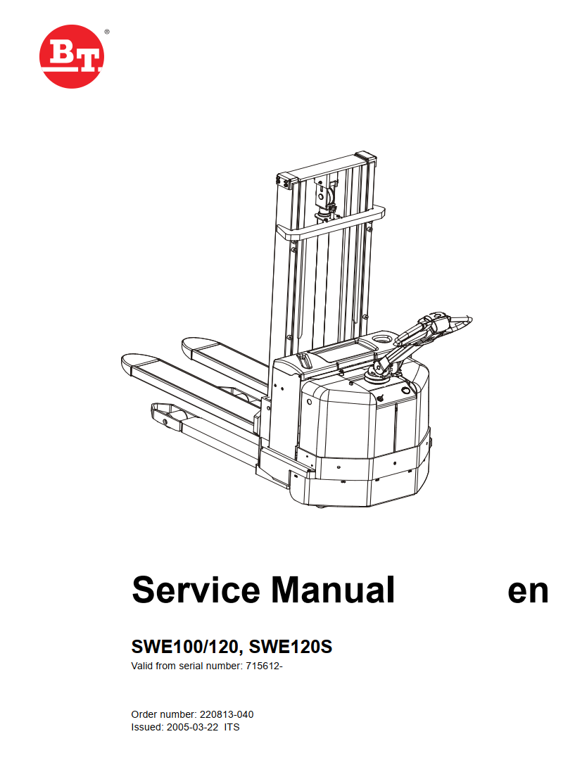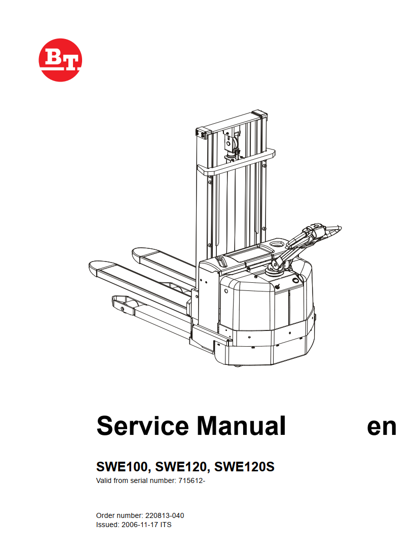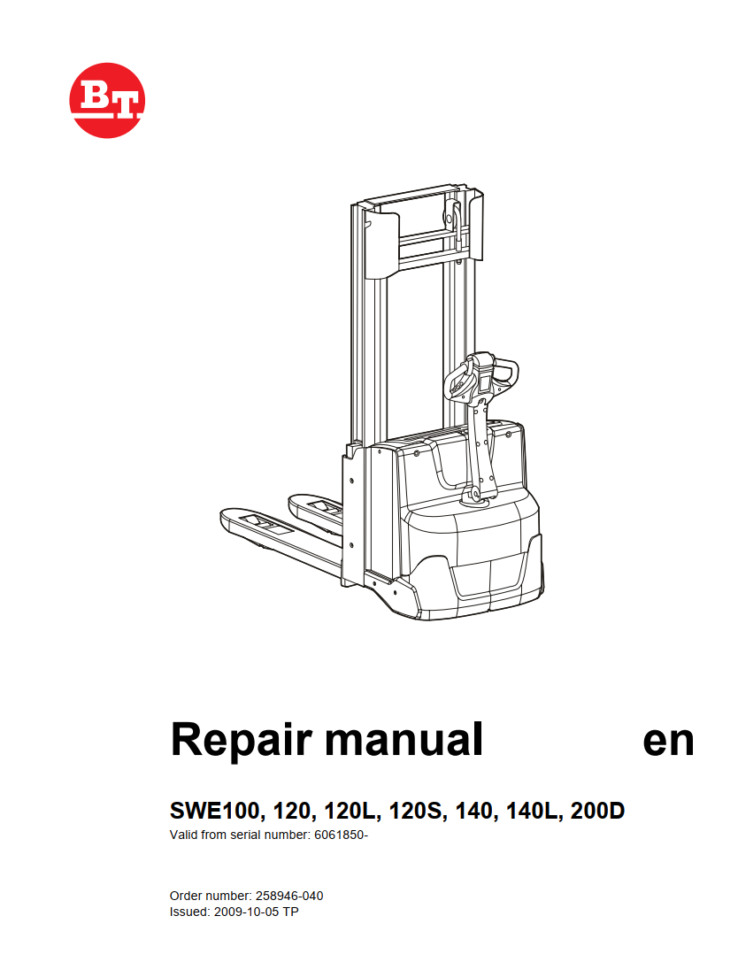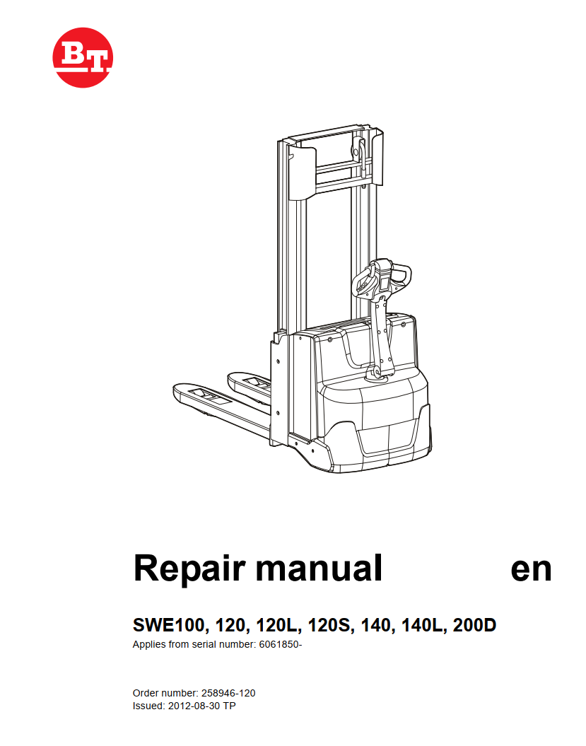 BT SWE 100 120 120L 120S 140 140L 160D 200D STACKER TRUCK SERVICE REPAIR MANUAL
