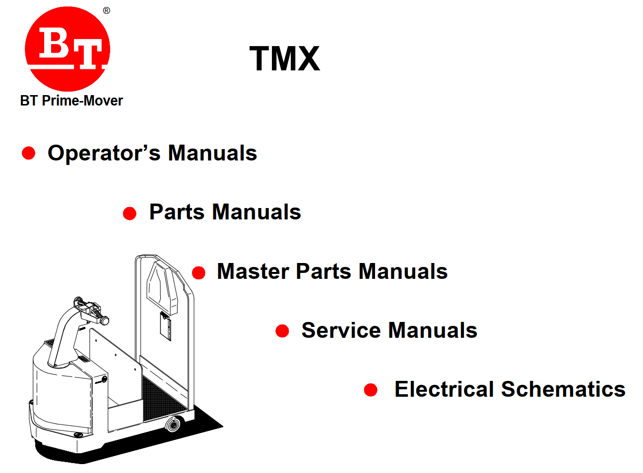 BT TMX ELECTRIC LOW LIFT TRACTOR FULL SET SERVICE, OPERATOR, PARTS, WIRING MANUAL