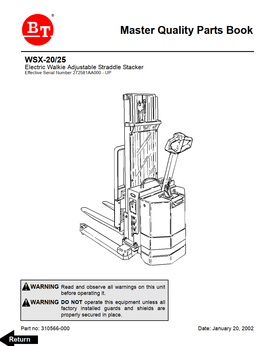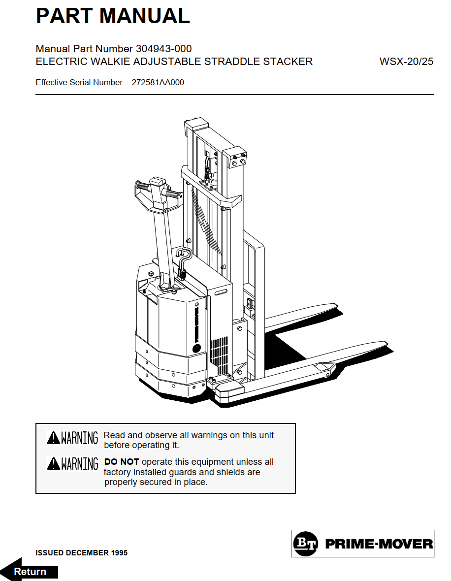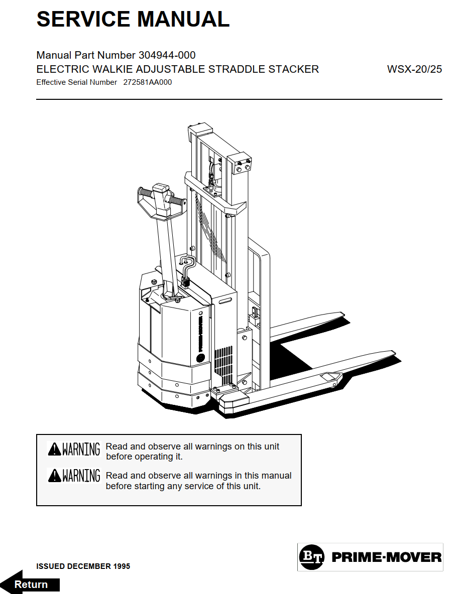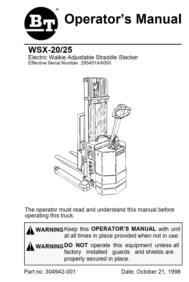 BT WRX-20 WRX-25 ELECTRIC ELECTRIC WALKIE ADJUSTABLE STRADDLE STACKER SERVICE, OPERATOR, PARTS, WIRING MANUAL