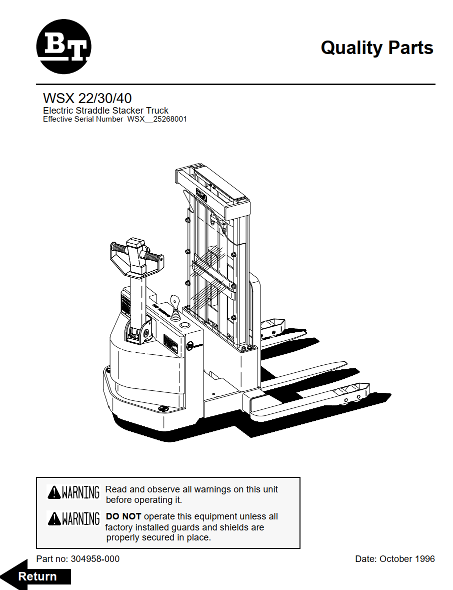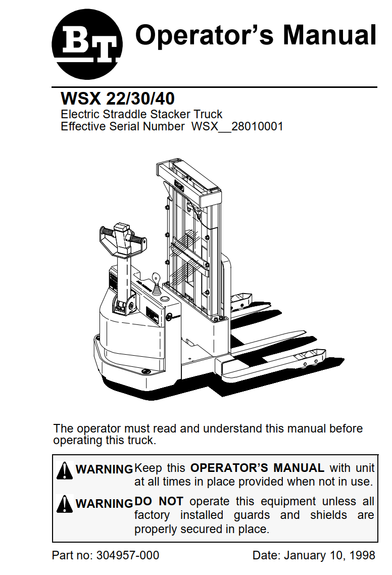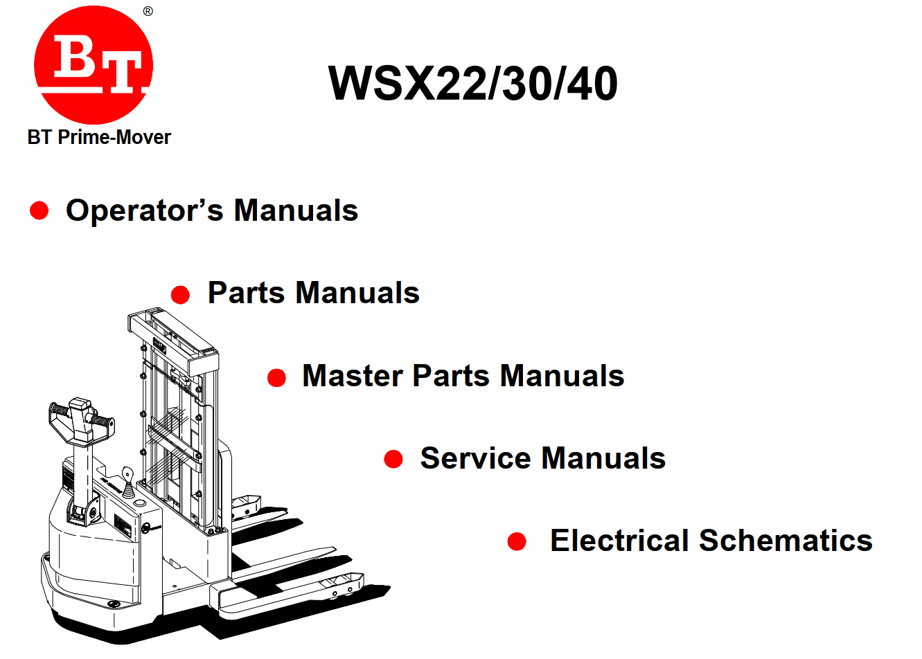 BT WSX22 WXS30 WSX40 ELECTRIC WALKIE HIGH LIFTER TRUCK SERVICE, OPERATOR, PARTS, WIRING MANUAL