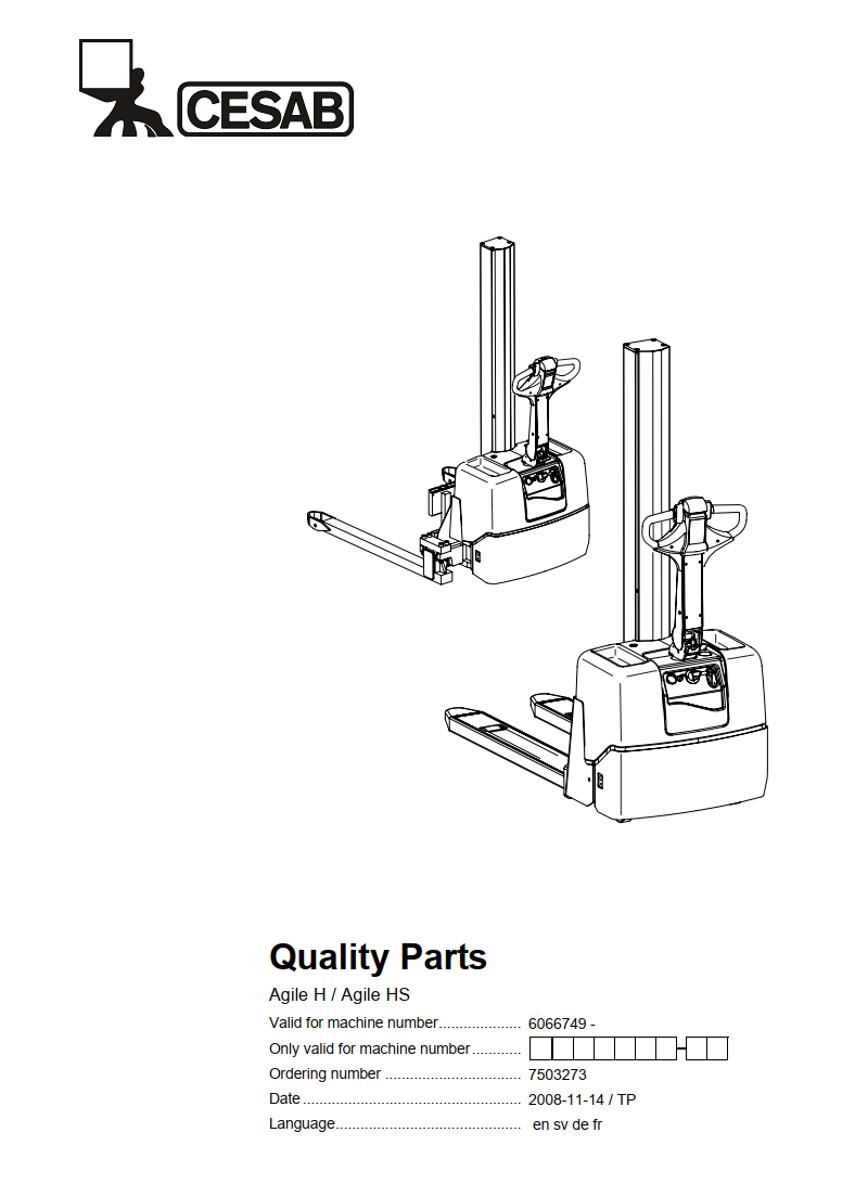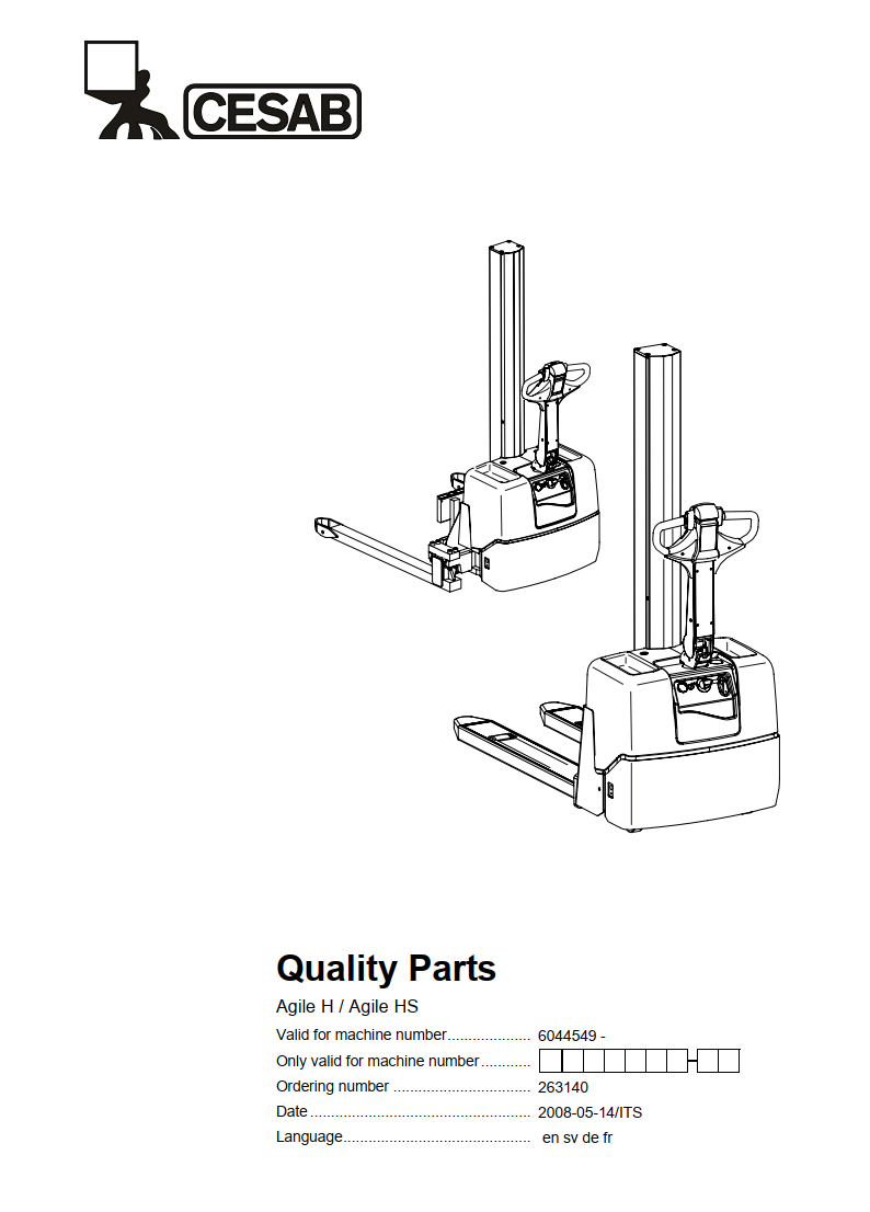 CESAB AGILE H, AGILE HS STACKERS SERVICE REPAIR, PARTS, OPERATOR'S MANUAL
