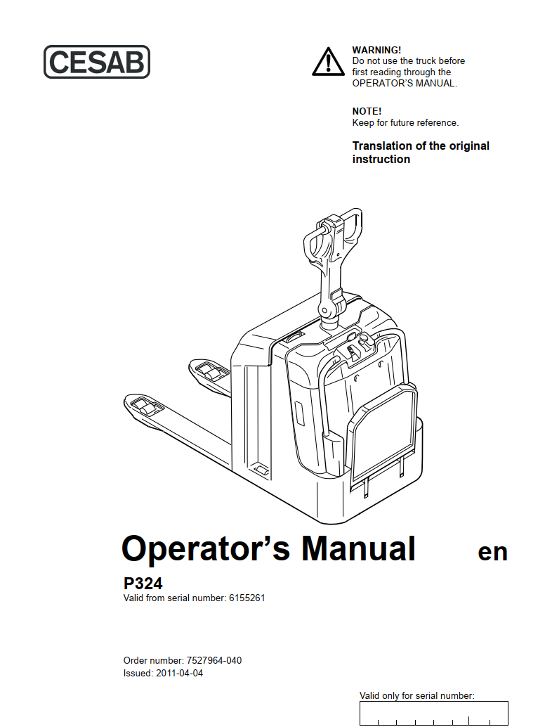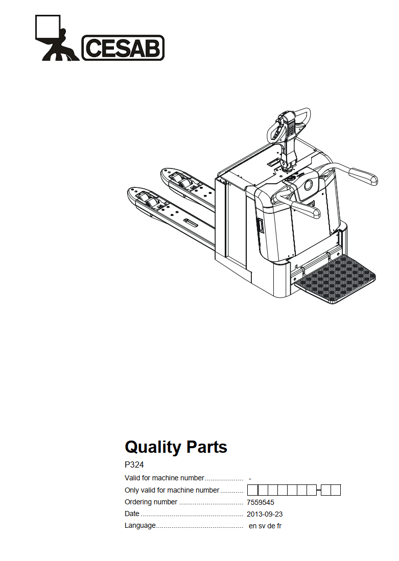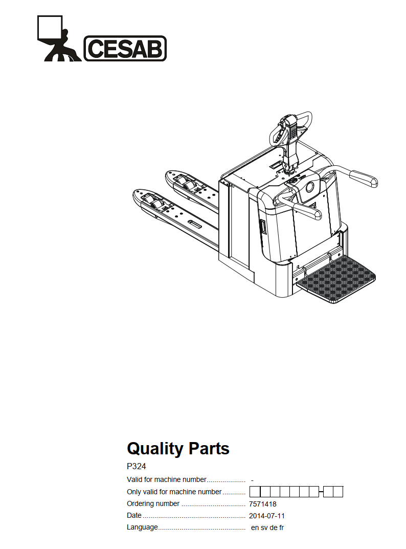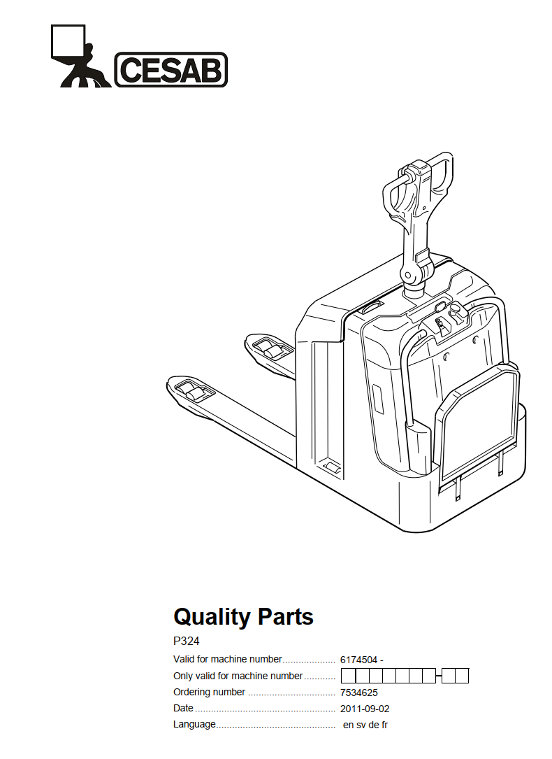 CESAB P324 ELECTRIC PALLET TRUCK SERVICE REPAIR, PARTS, OPERATOR'S MANUAL