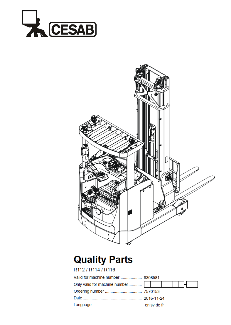 CESAB R112 ELECTRIC REACH TRUCK WORKSHOP SERVICE REPAIR, PARTS MANUAL