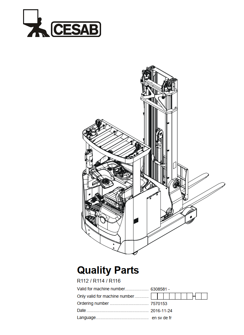 CESAB R114 ELECTRIC REACH TRUCK SERVICE REPAIR, PARTS, OPERATOR'S MANUAL
