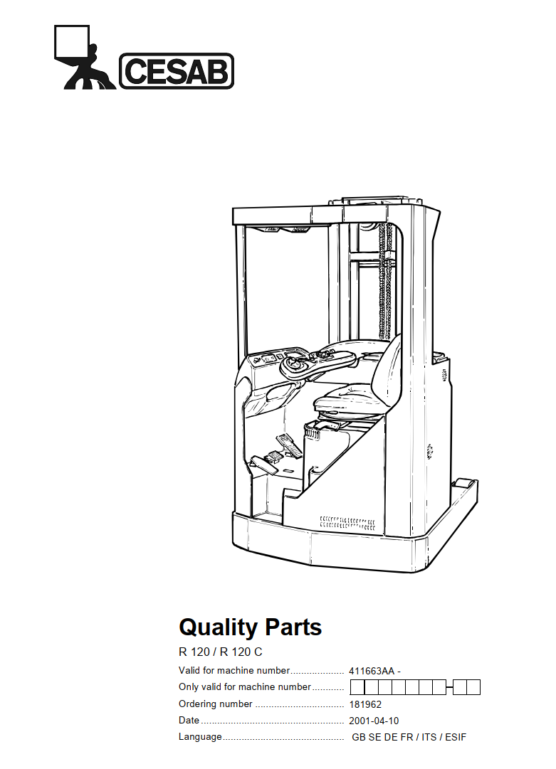 CESAB R120C ELECTRIC REACH TRUCK SERVICE REPAIR, PARTS, OPERATOR MANUAL