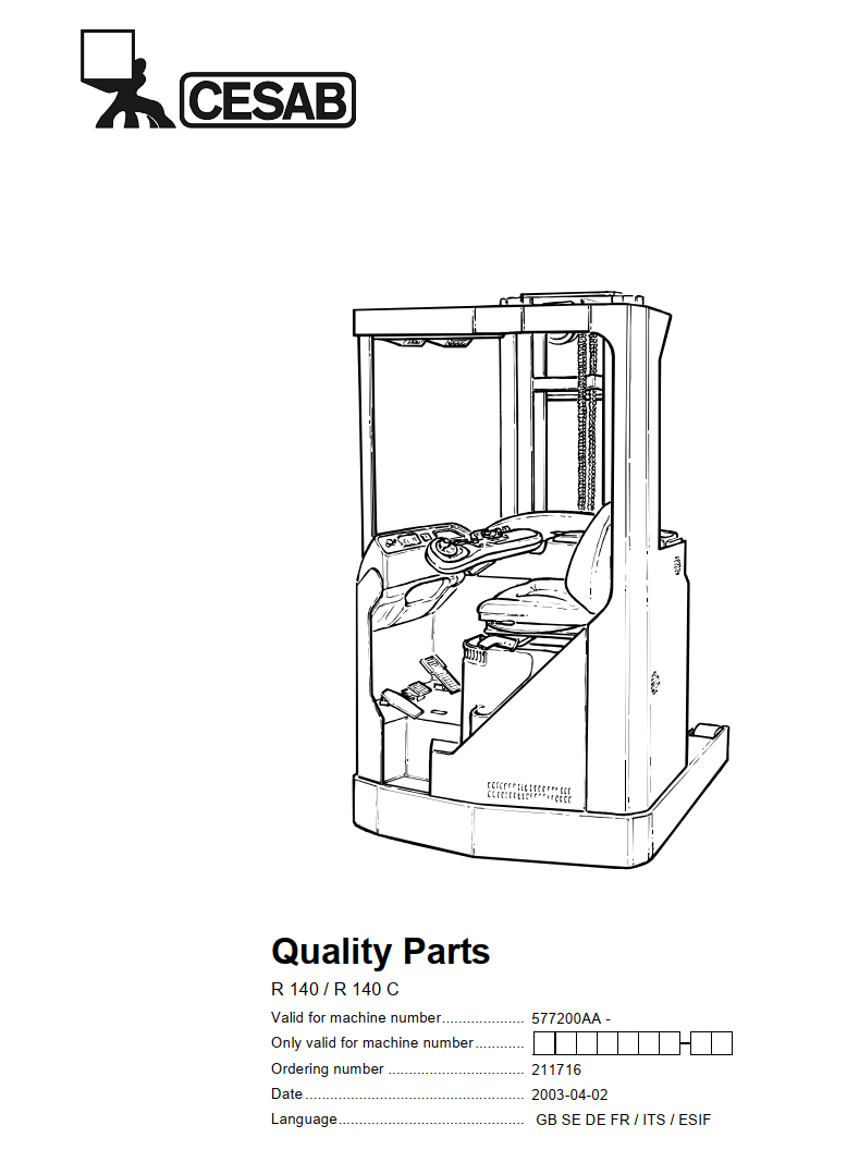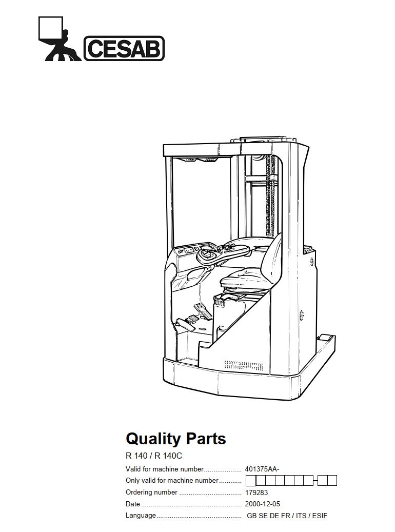 CESAB R140 ELECTRIC REACH TRUCK SERVICE REPAIR, PARTS, OPERATOR MANUAL