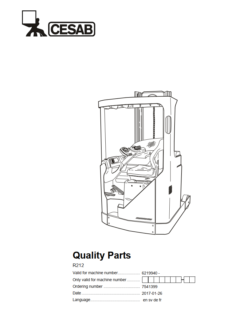 CESAB R212 ELECTRIC REACH TRUCK SERVICE REPAIR, PARTS, OPERATOR'S MANUAL