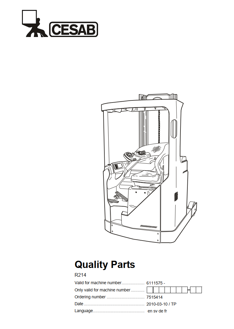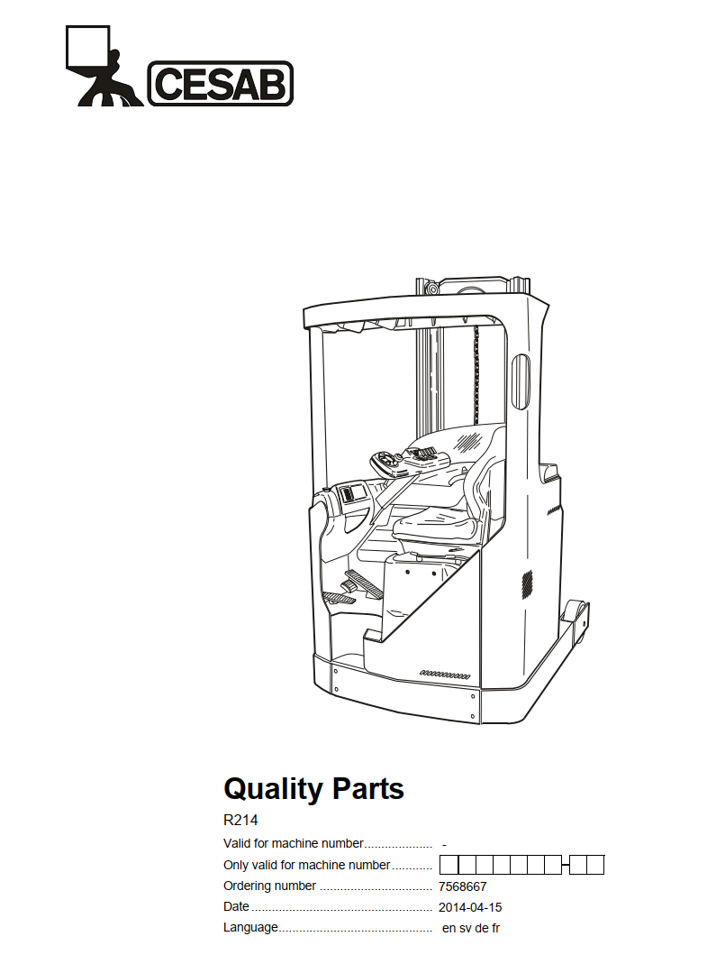 CESAB R214 ELECTRIC REACH TRUCK SERVICE REPAIR, PARTS, OPERATOR'S MANUAL