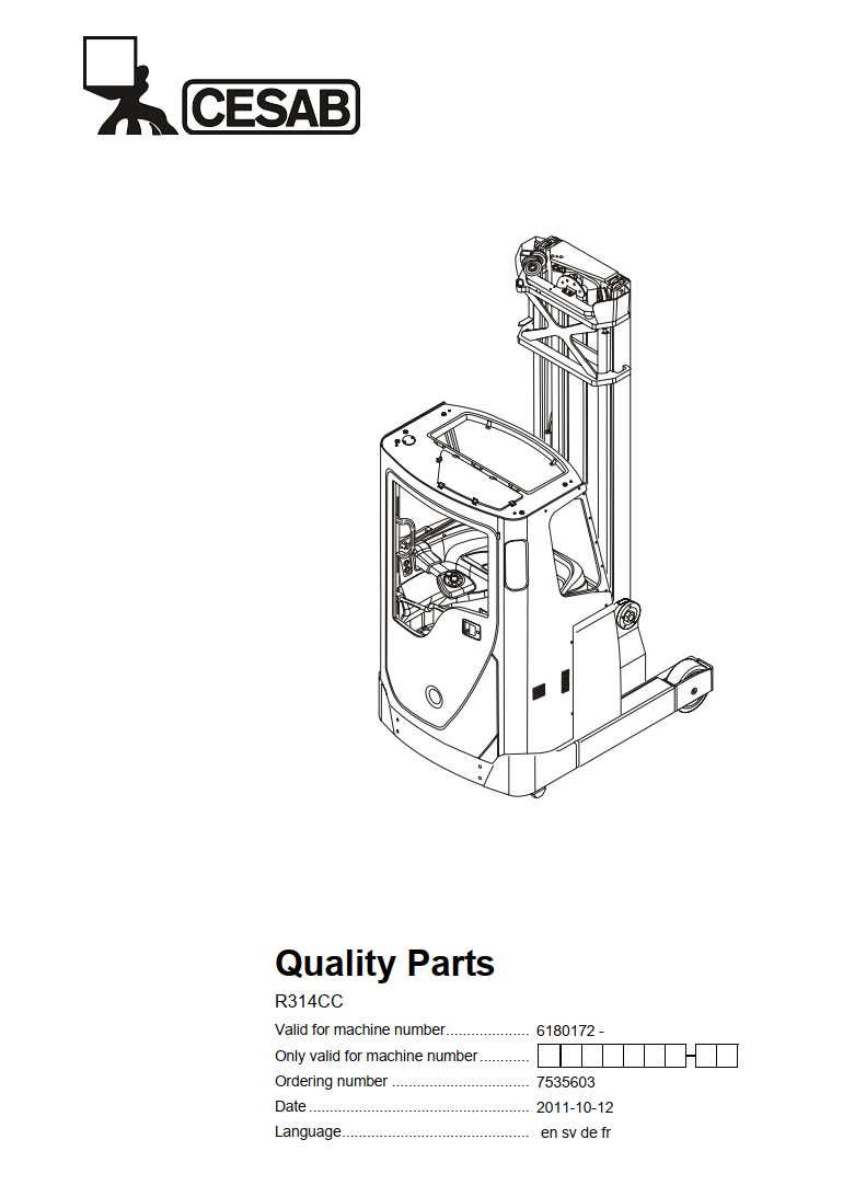 CESAB R314 CC ELECTRIC REACH TRUCK SERVICE REPAIR, PARTS, OPERATOR MANUAL