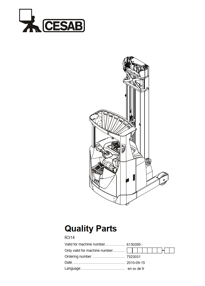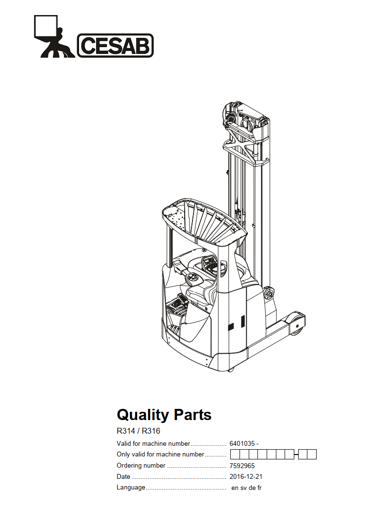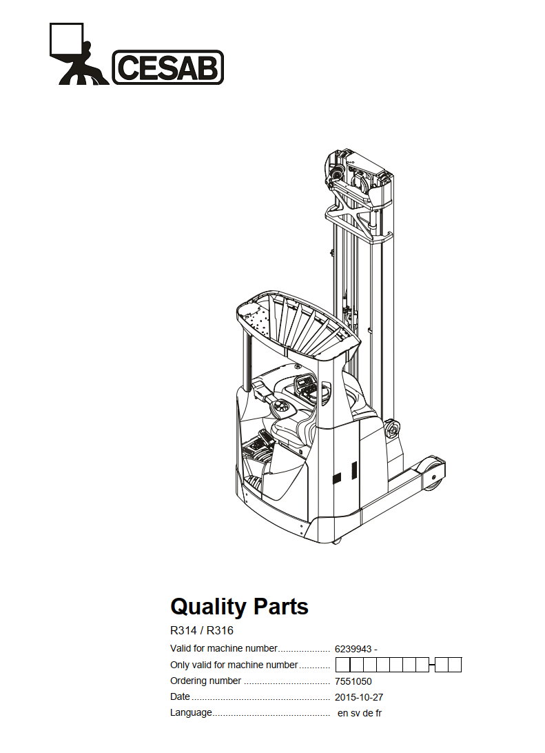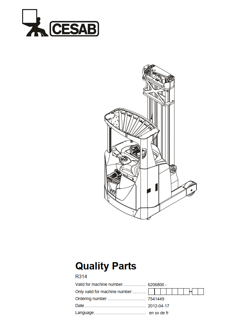 CESAB R314 ELECTRIC REACH TRUCK SERVICE REPAIR, PARTS, OPERATOR'S MANUAL