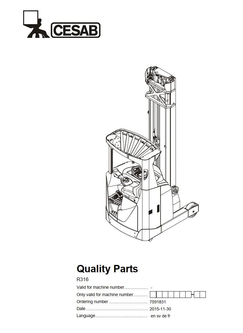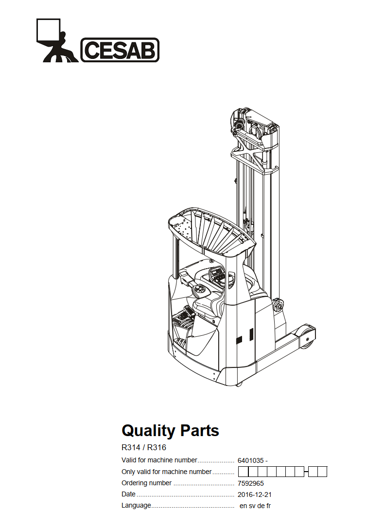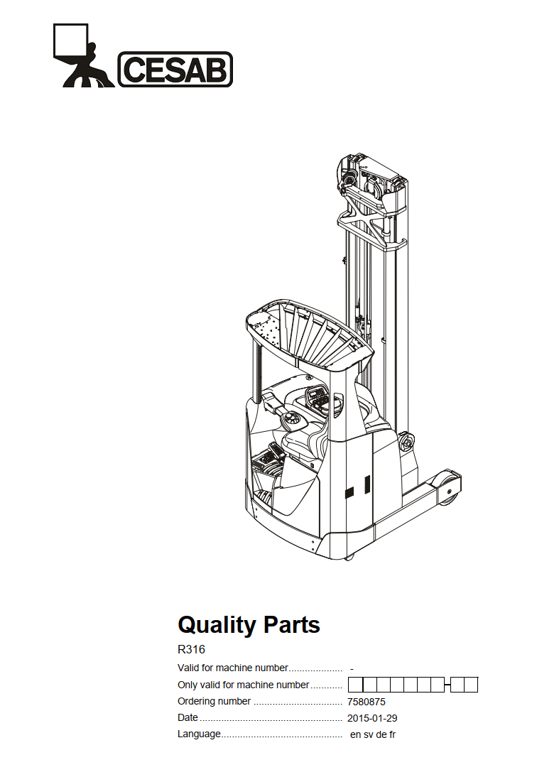 CESAB R316 ELECTRIC REACH TRUCK FULL SET SERVICE REPAIR, PARTS, OPERATOR'S MANUAL