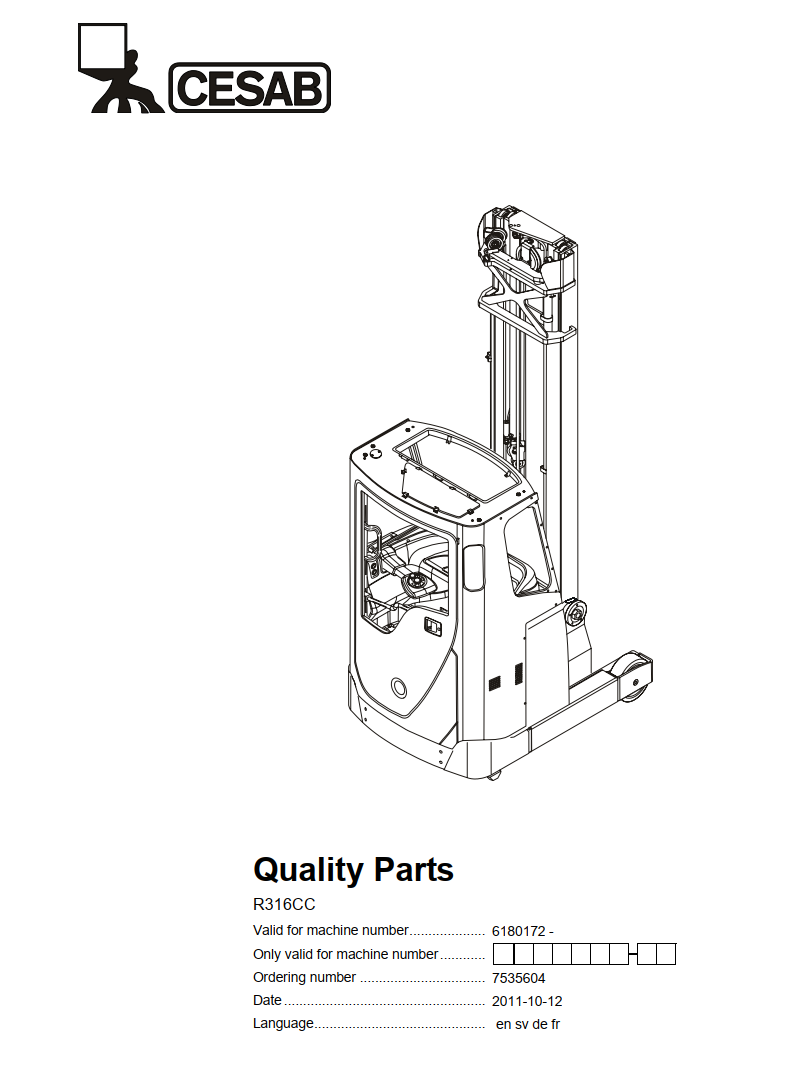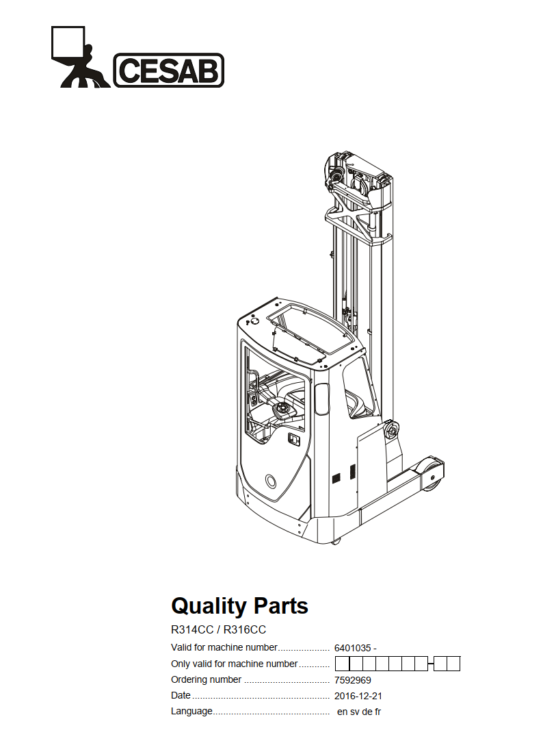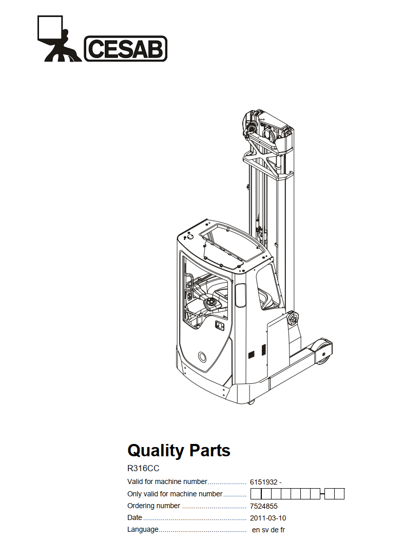 CESAB R316CC ELECTRIC REACH TRUCK SERVICE REPAIR, PARTS, OPERATOR MANUAL
