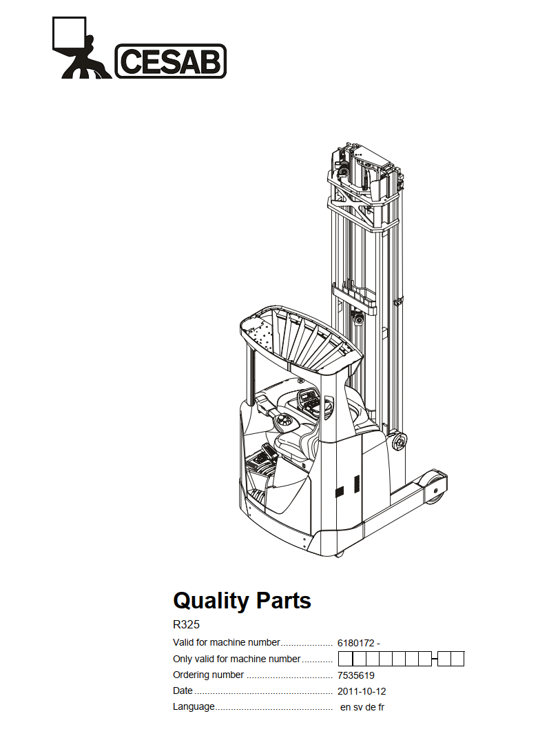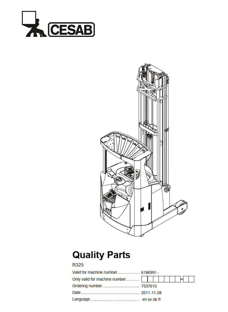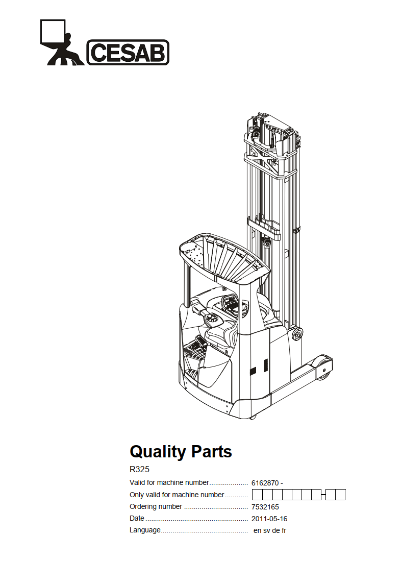 CESAB R325 ELECTRIC REACH TRUCK SERVICE REPAIR, PARTS, OPERATOR'S MANUAL