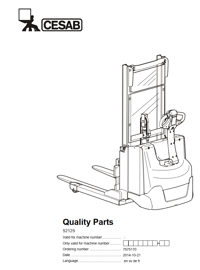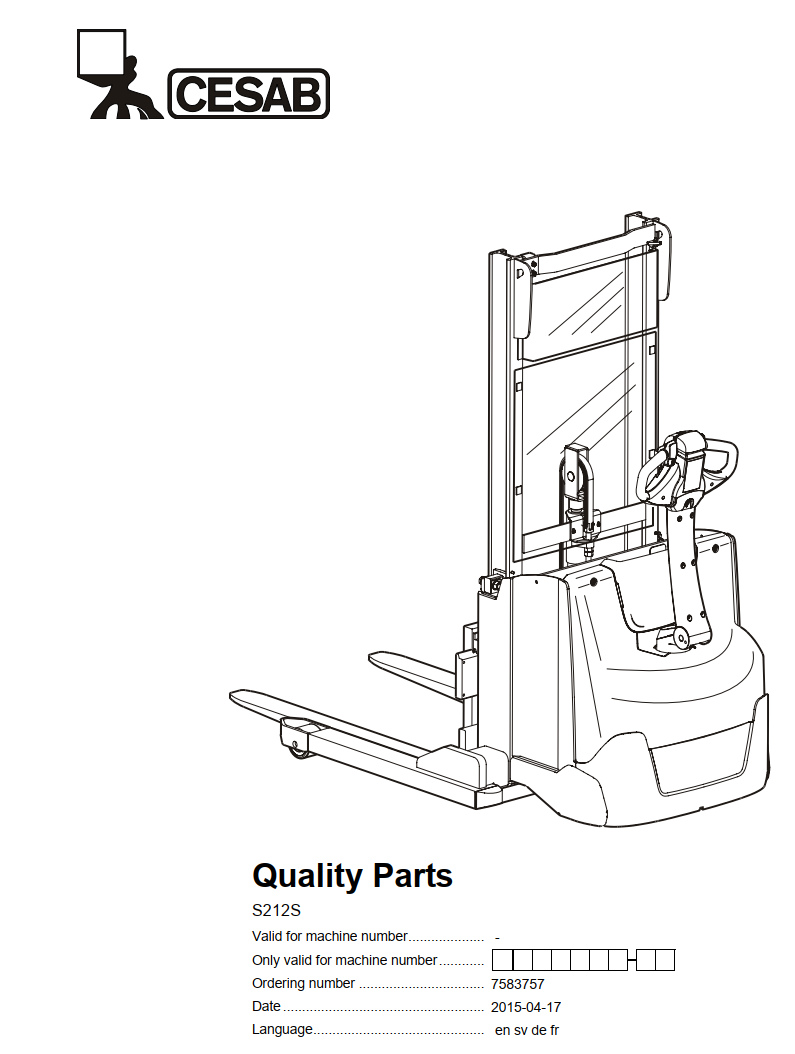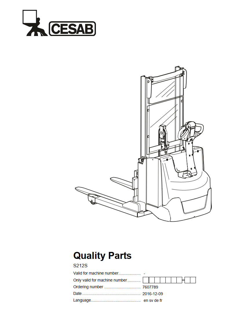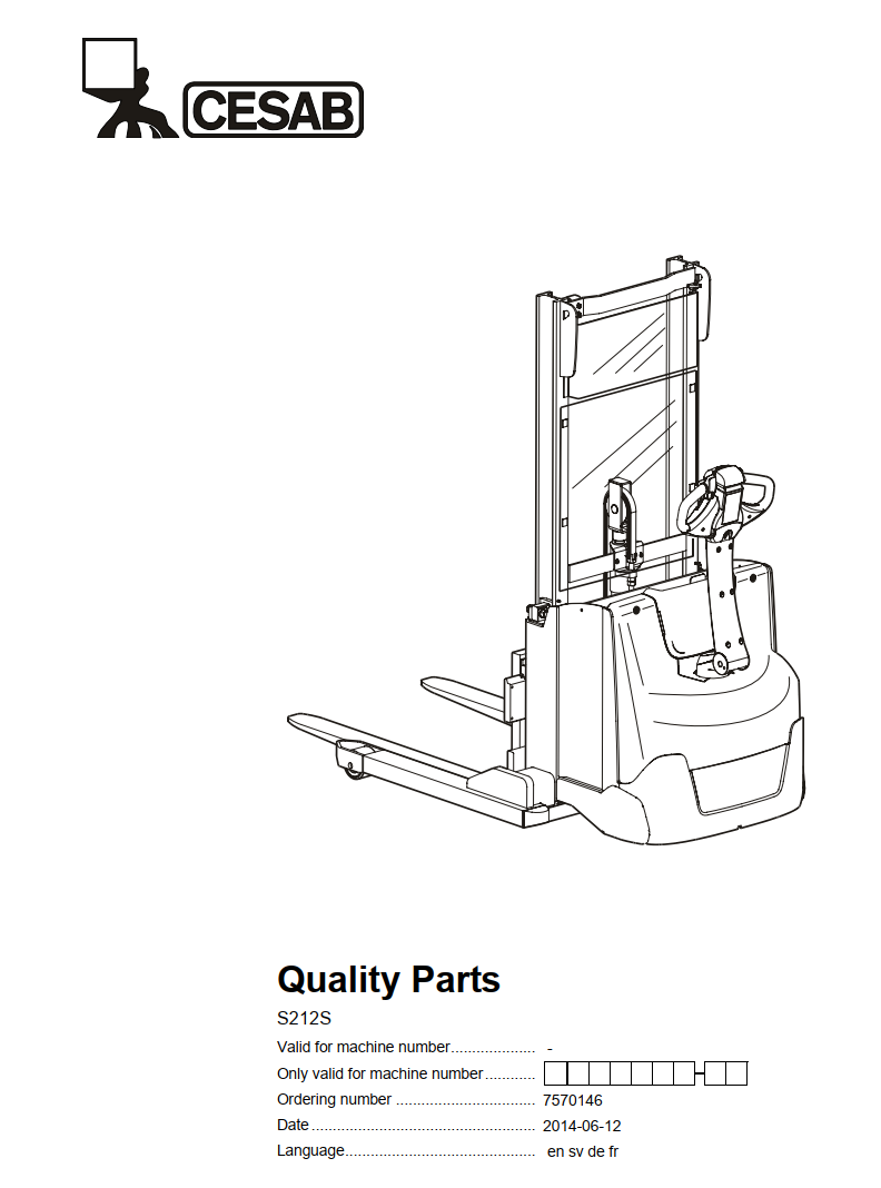 CESAB S212S STACKER FORKLIFT SERVICE REPAIR, PARTS, OPERATOR'S MANUAL