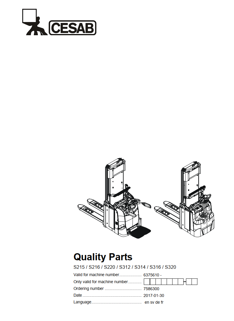 CESAB S320 STACKER FORKLIFT SERVICE REPAIR, PARTS, WIRING MANUAL