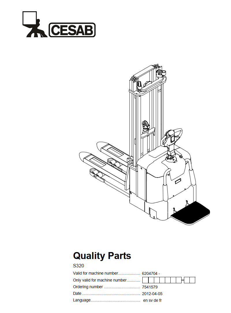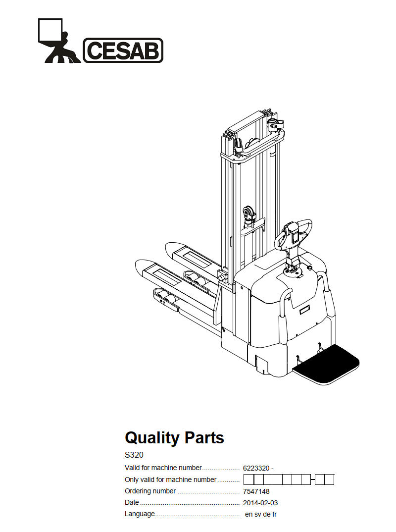 CESAB S320 WALKIE STACKER FORKLIFT SERVICE REPAIR, PARTS, OPERATOR'S MANUAL