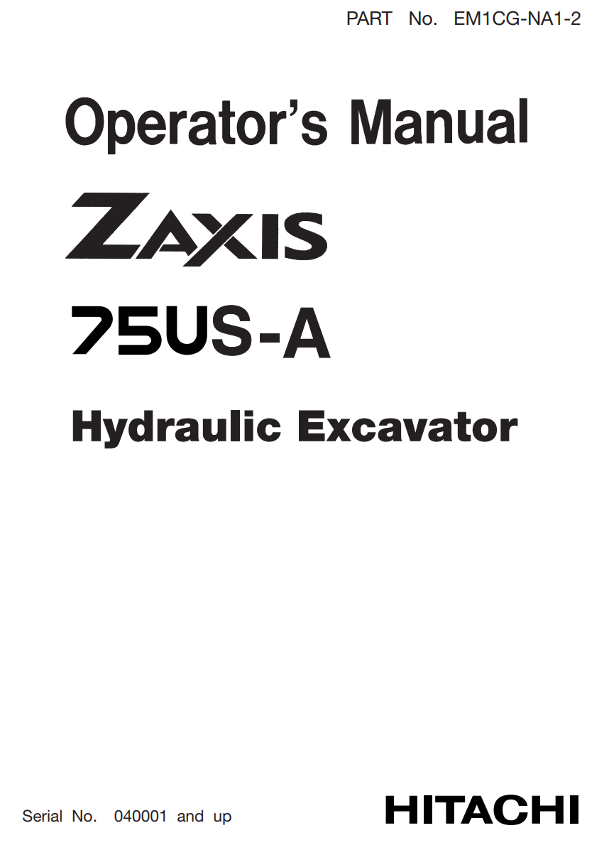 HITACHI ZAXIS 75US-A 75 UR EXCAVATOR WORKSHOP, OPERATION, TROUBLESHOOT, WIRING MANUAL