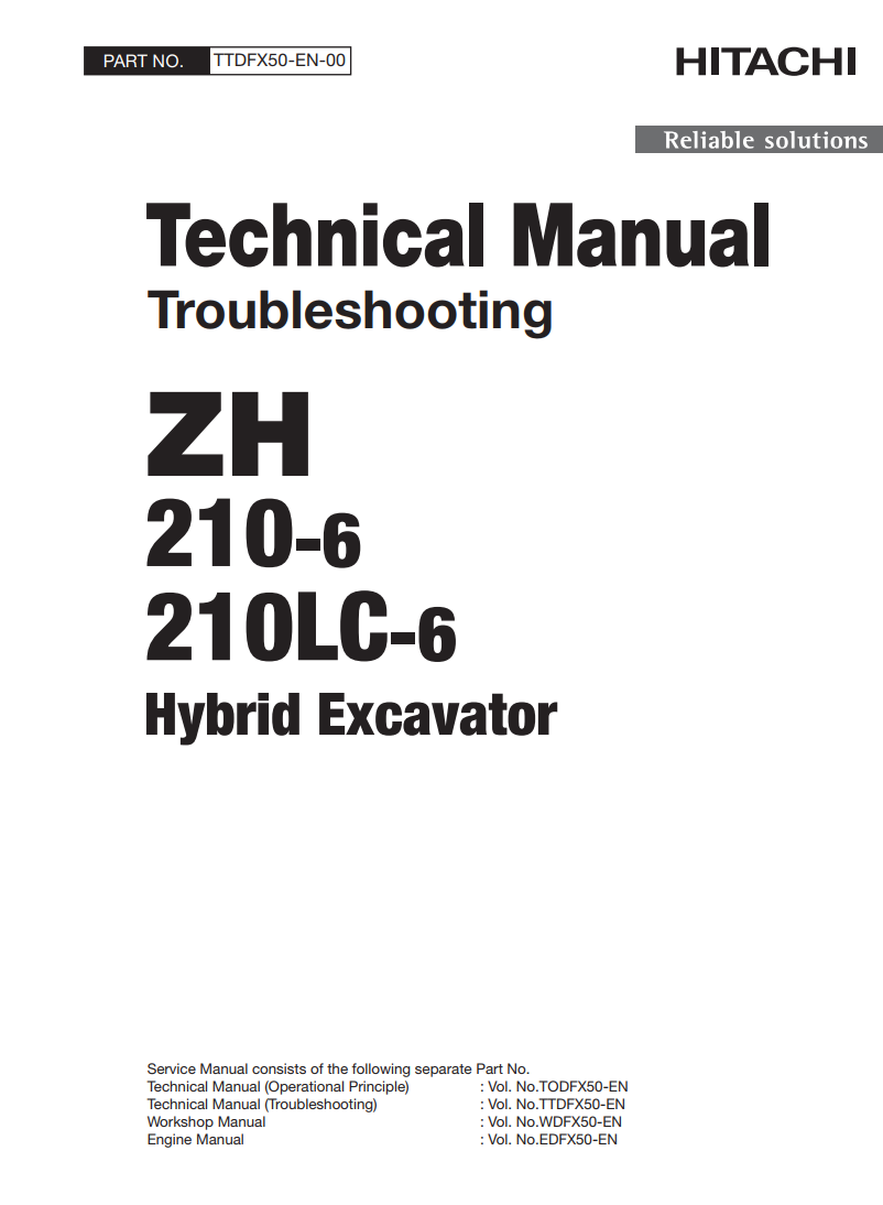 HITACHI ZH210-6 ZH210LC-6 HYBRID EXCAVATOR SERVICE, TROUBLESHOOTING, OPERATION, DIAGRAMS MANUAL