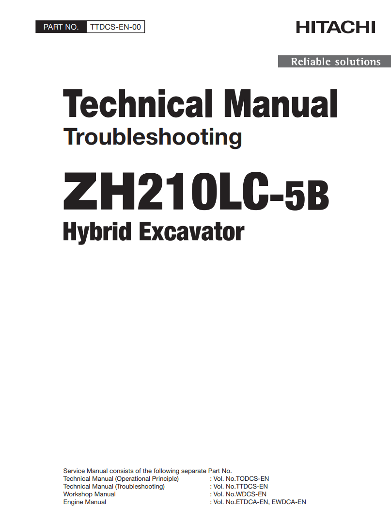 HITACHI ZH210LC-5B HYBRID EXCAVATOR SERVICE, TROUBLESHOOTING, DIAGRAMS MANUAL