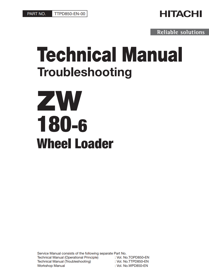 HITACHI ZW180-6 WHEEL LOADER WORKSHOP, OPERATIONAL, TROUBLESHOOTING MANUAL