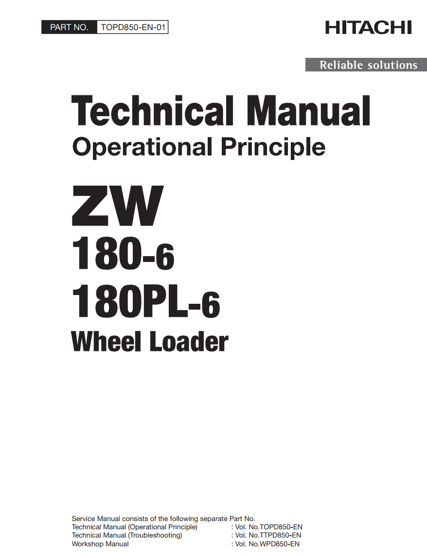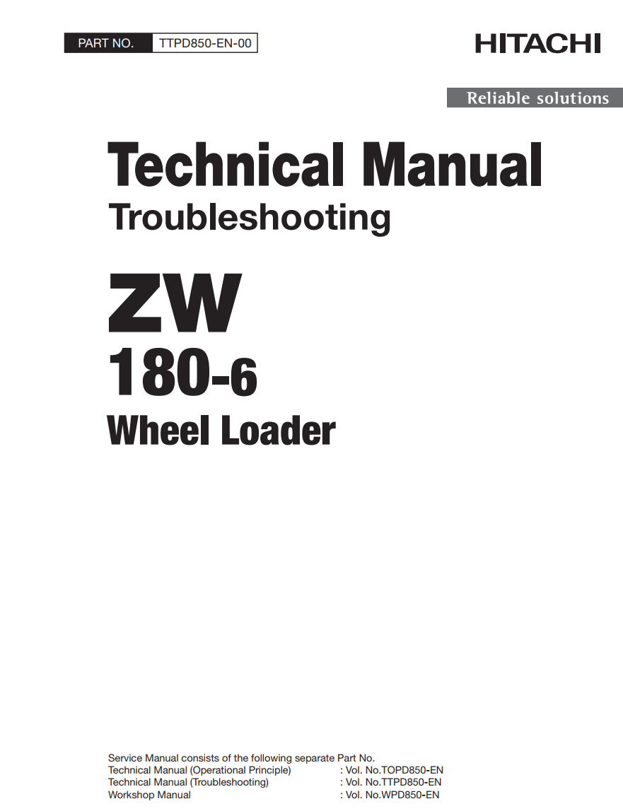HITACHI ZW180-6 ZW180PL-6 WHEEL LOADER WORKSHOP, OPERATIONAL, TROUBLESHOOT, DIAGRAMS MANUAL