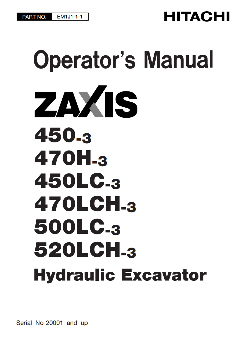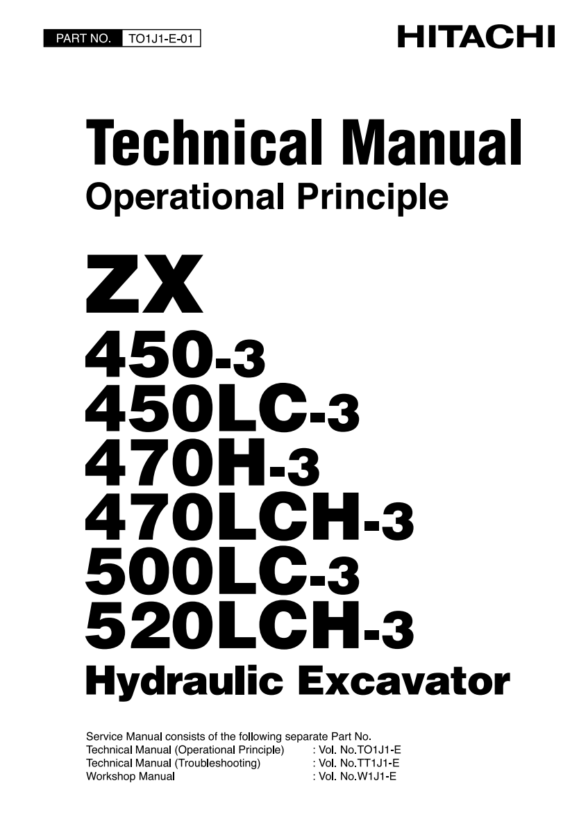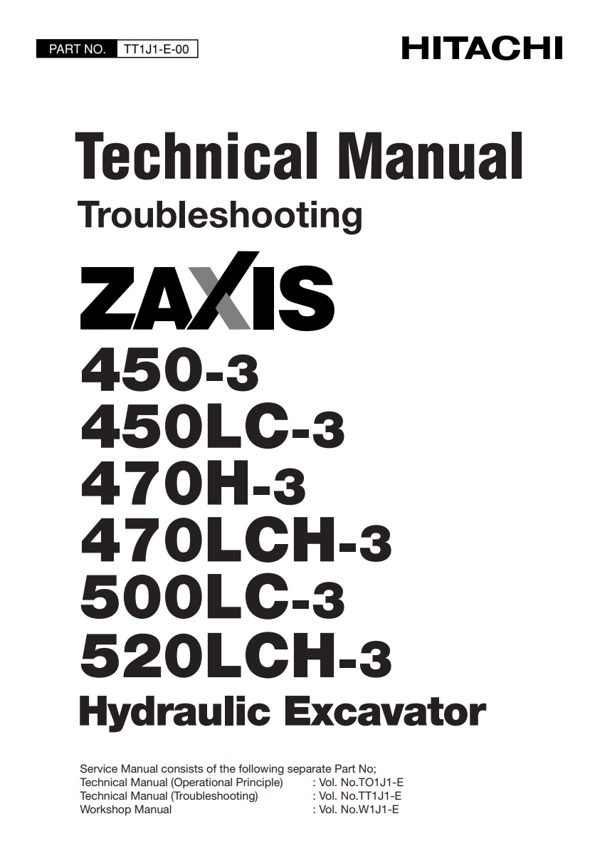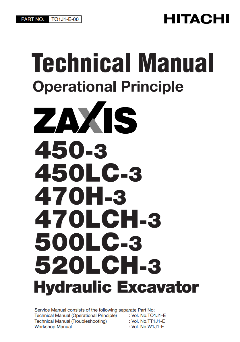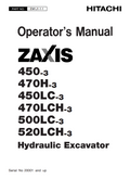 HITACHI ZX 450-3 450LC-3 470H-3 470LCH-3 500LC-3 520LCH-3 EXCAVATOR WORKSHOP TECHNICAL, OPERATOR, WIRING MANUAL