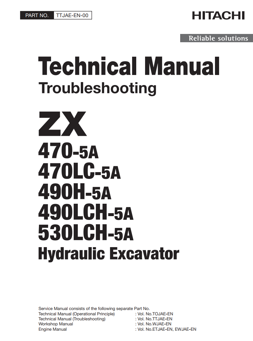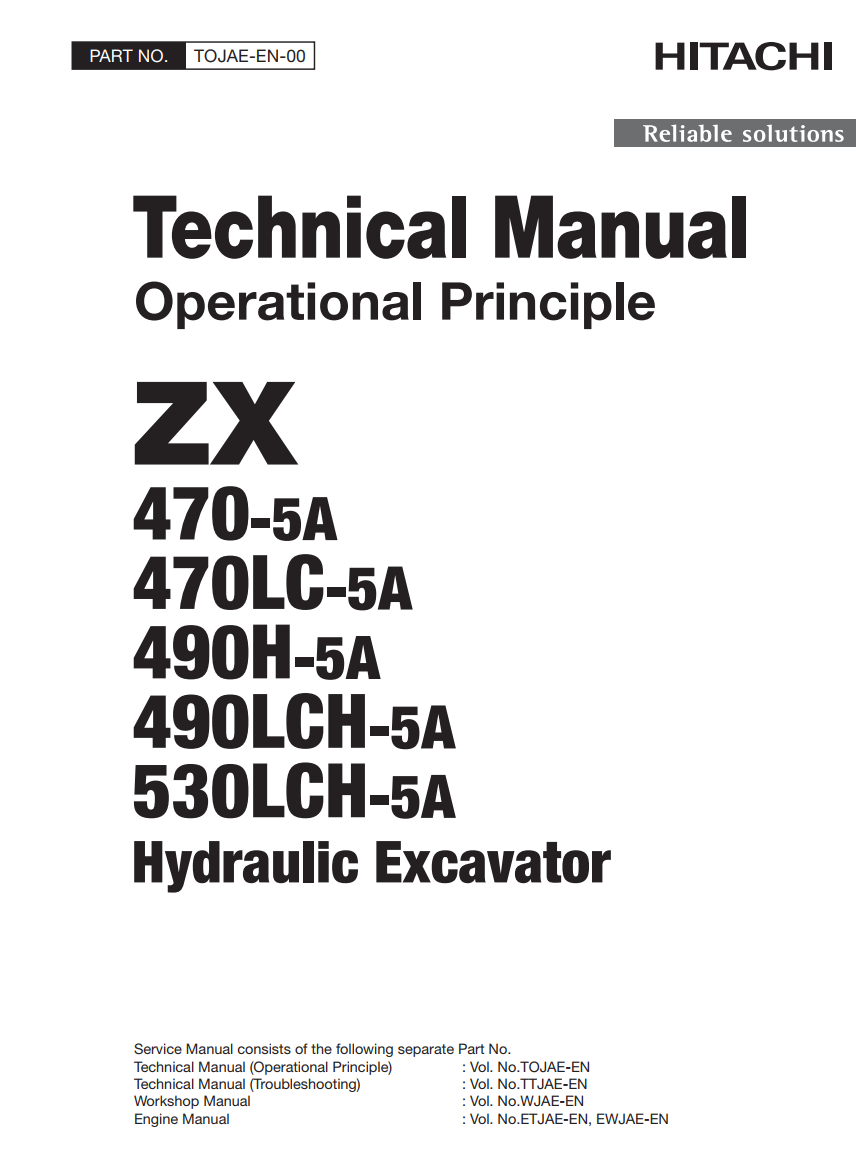 HITACHI ZX 470-5A 470LC-5A 490H-5A 490LCH-5A 530LCH-5A EXCAVATOR WORKSHOP, TECHNICAL, DIAGRAMS MANUAL