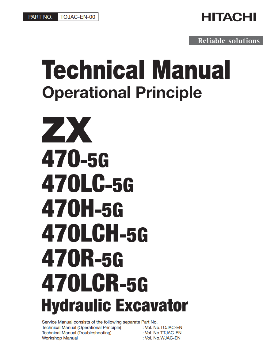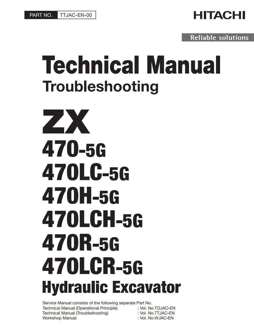 HITACHI ZX 470-5G 470LC-5G 470H-5G 470LCH-5G 470R-5G 470LCR-5G EXCAVATOR WORKSHOP, TECHNICAL, DIAGRAMS MANUAL