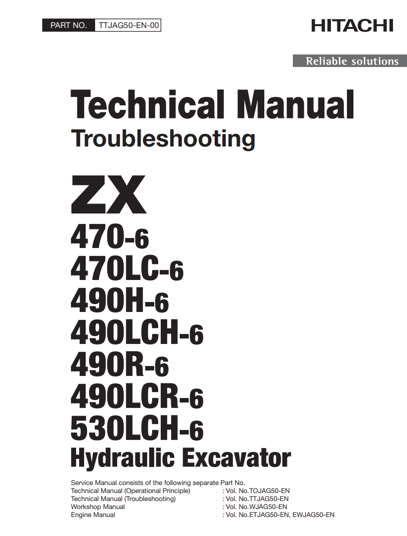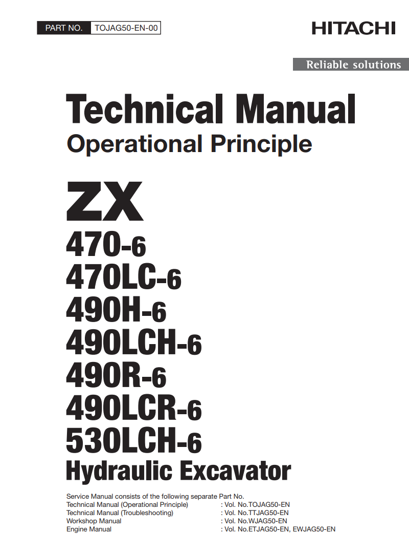 HITACHI ZX 470-6 470LC-6 490H-6 490LCH-6 490R-6 490LCR-6 530LCH-6 EXCAVATOR WORKSHOP, TECHNICAL, DIAGRAMS MANUAL