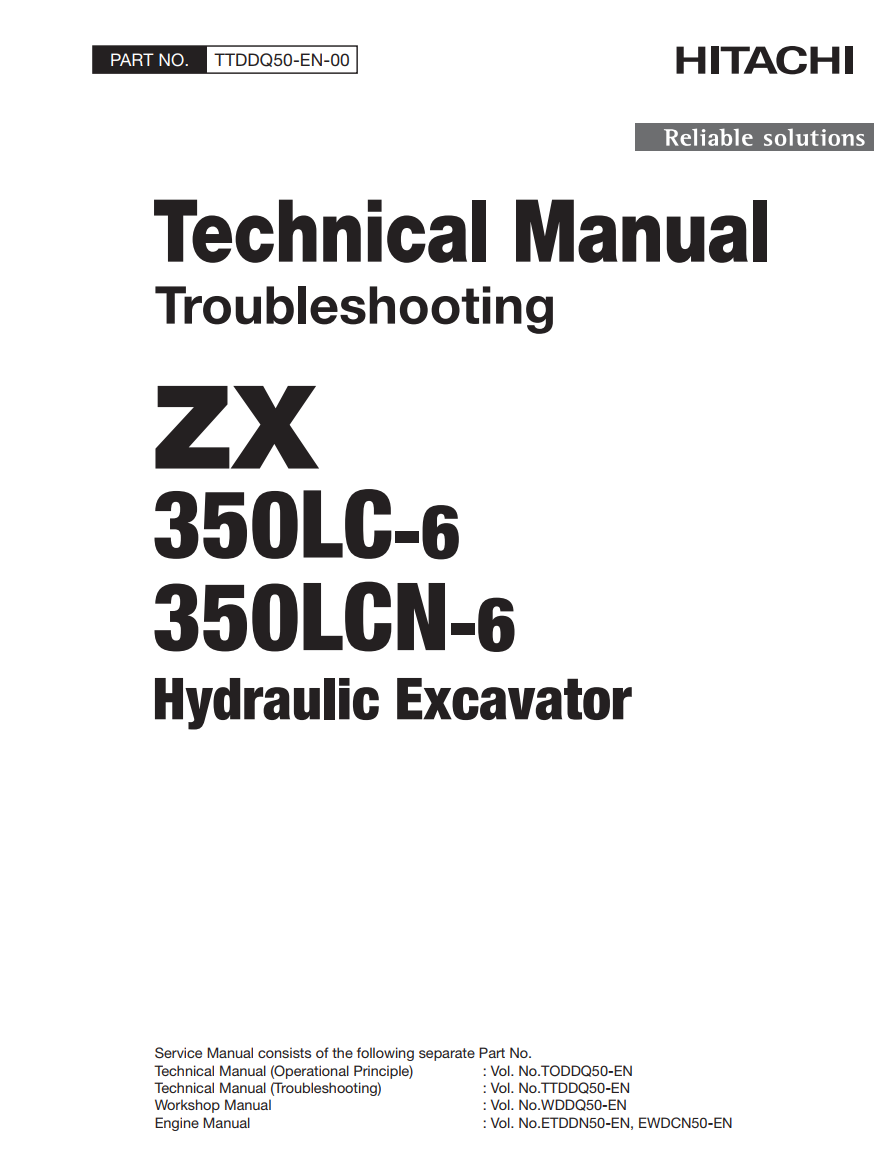 HITACHI ZX350LC-6 ZX350LCN-6 EXCAVATOR WORKSHOP, TECHNICAL, WIRING, PARTS MANUAL