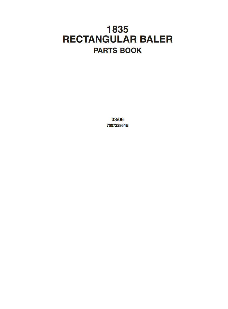 MASSEY FERGUSON MF 1835 RECTANGULAR BALER PARTS CATALOG